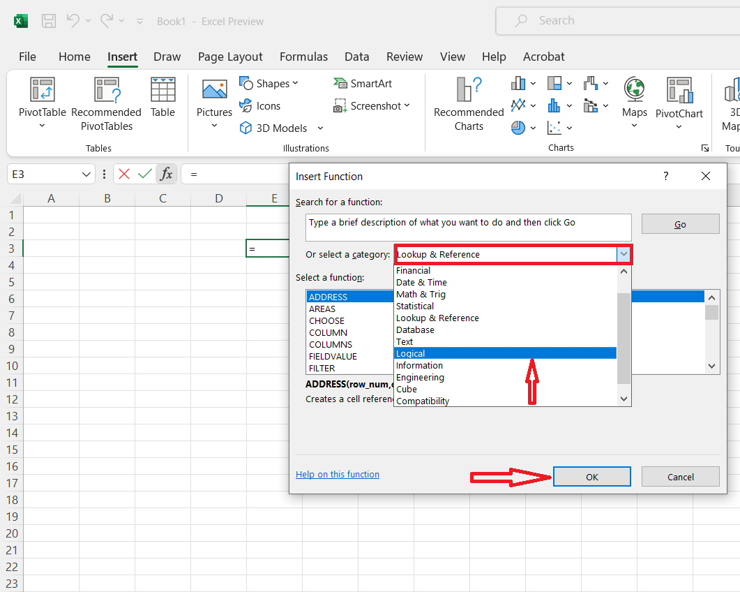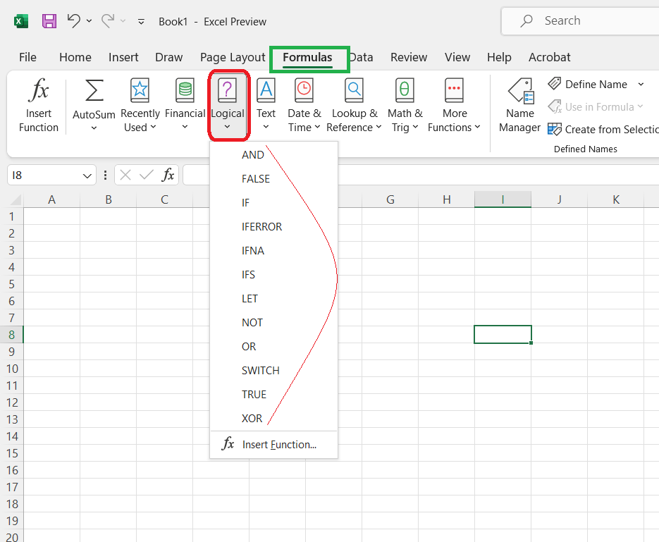 Explain the understanding of Advanced Excel Formulas, and show details where advanced formulas such as the lookup function, and logical function are found in Excel with clear screenshots.