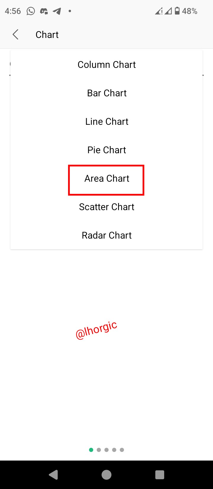 We have quite a number of them and am going to be mentioning them although my emphasis will be on just three which I have chosen to attempt this task. We have column chart, bar chart, line chart, pie chart, area chart, scatter chart and area chart. Of all these chart, I would be discussing just 3.