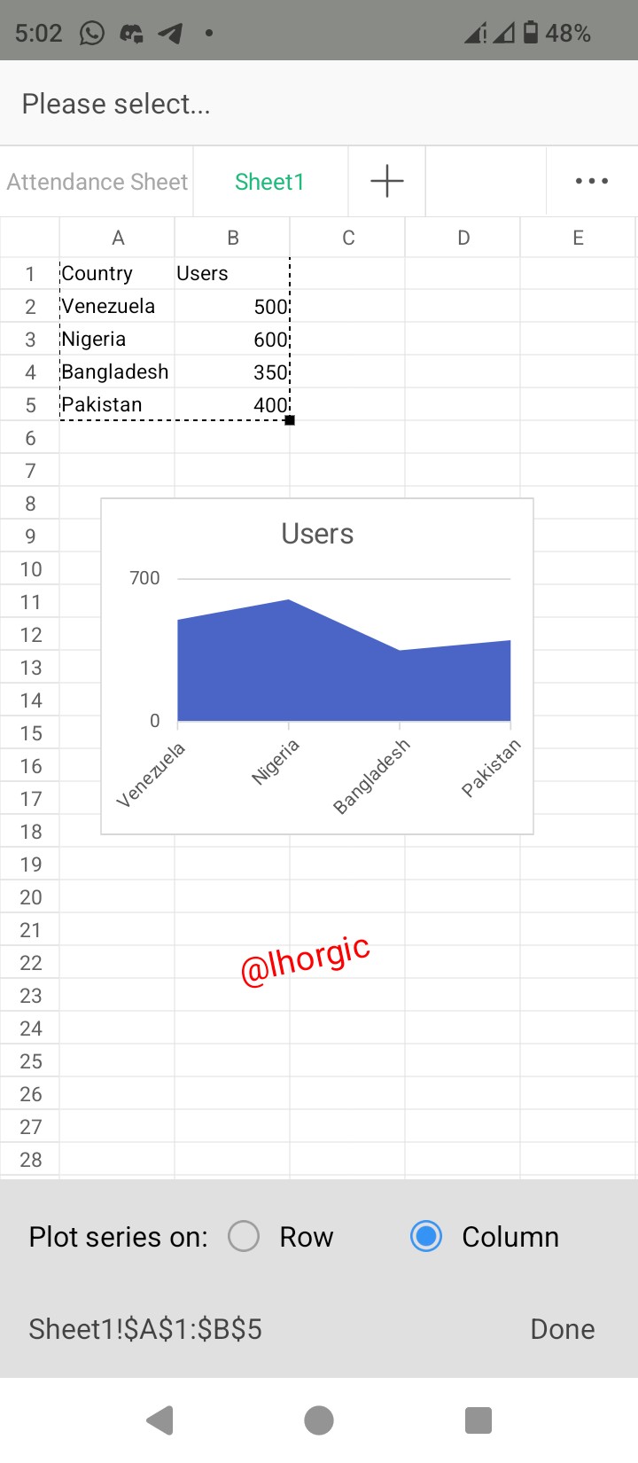 • Step 4: I repeated the same process about to get my Area Chart just as seen the images below.