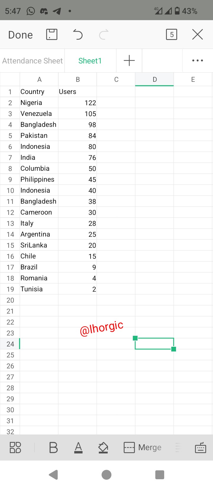 • From the chart we can tell that the Nigeria has the highest number of users on the platform. So we can use the first position to describe them