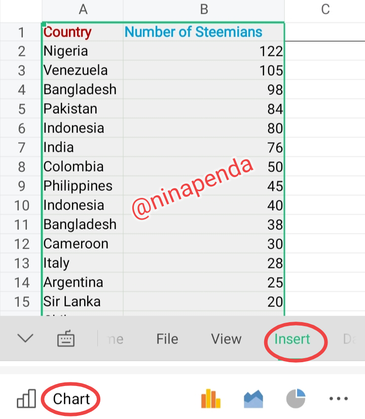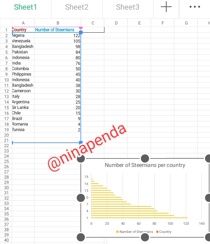 Using the color beside the number of Steemians in the chart, I was able to read the information regarding chart location and creation in Excel.