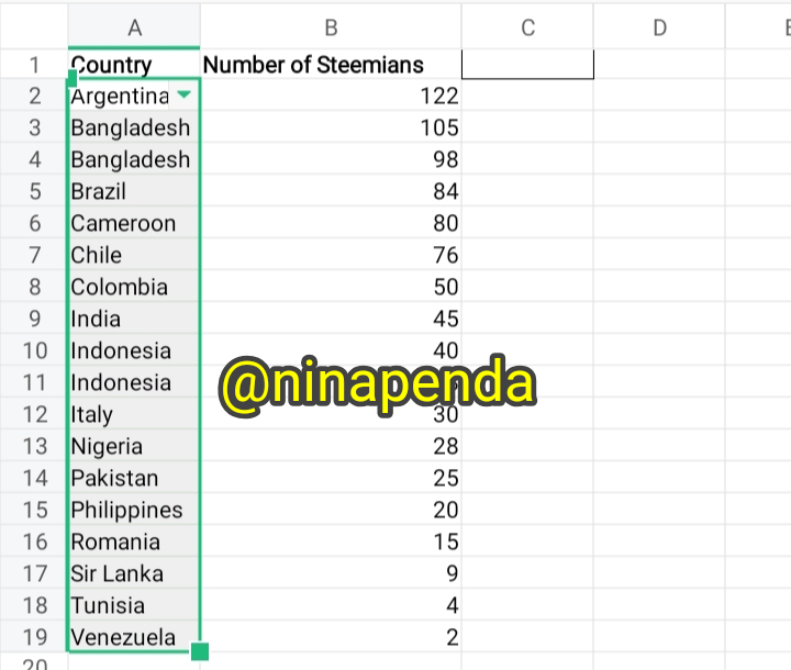 • We have Indonesia as the ninth on the chart with 40 Steemians.
