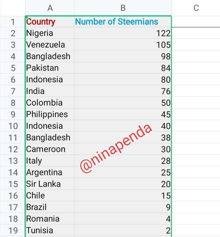 • Nigeria which is the number one, has the highest number of Steemians of about 122 members.