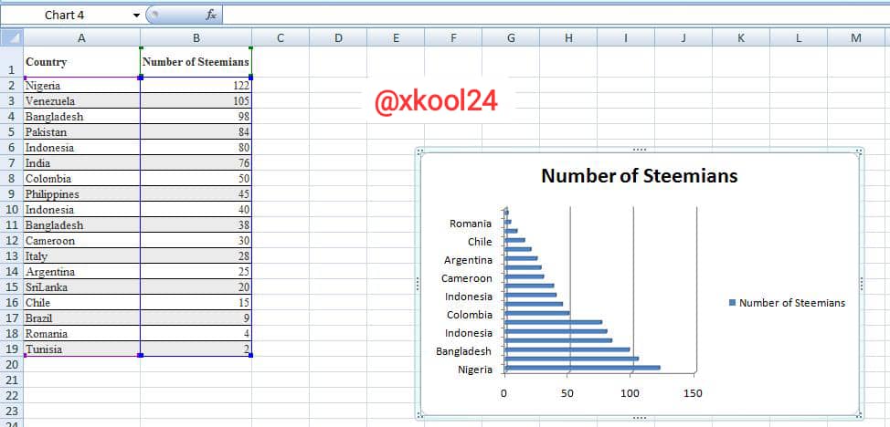- Nigeria repeesents the highest numner of Steemians as captured in the date with 122
