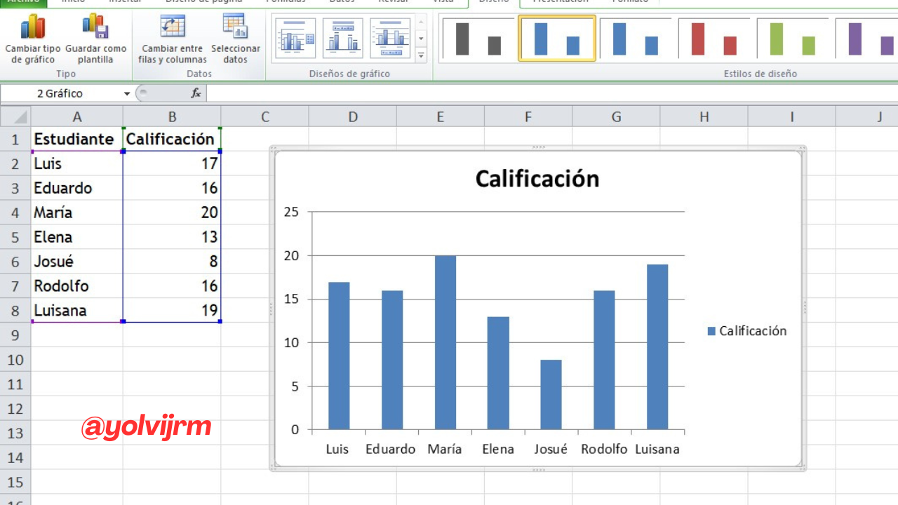 Seguidamente se utilizaron las Herramientas de gráficos que e encuentran la parte superior de la cinta de opciones de la hoja de cálculo, pudiendo así colocar un estilo de fondo, un color para las barras y el estilo de las letras, las cuales coloqué en negrita para que tuviesen mayor visibilidad.