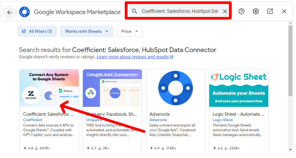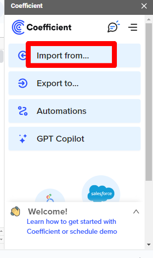 Tools like Coefficient or Add-ons allow data to be synced with systems like Salesforce databases or used in more advanced workflows, so we can easily export our data.