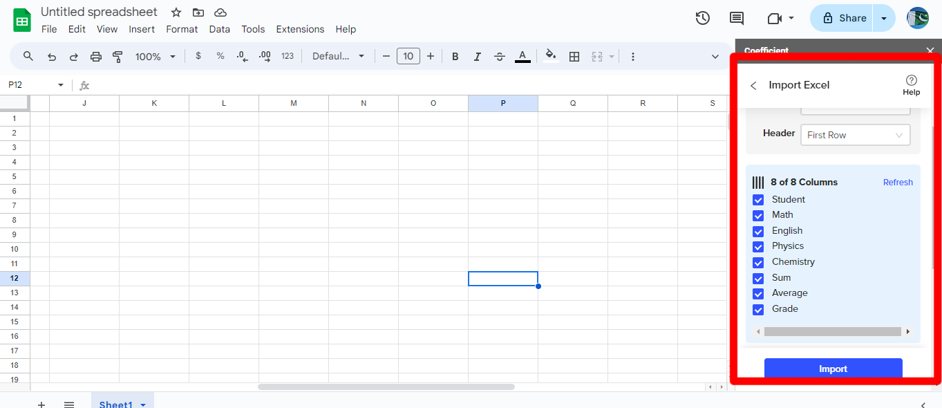 This is the best way to import any file into Google Sheets. This method is an add-on method that works like a Coefficient in that we install an extension and import any external files or API through it in a much better way.
