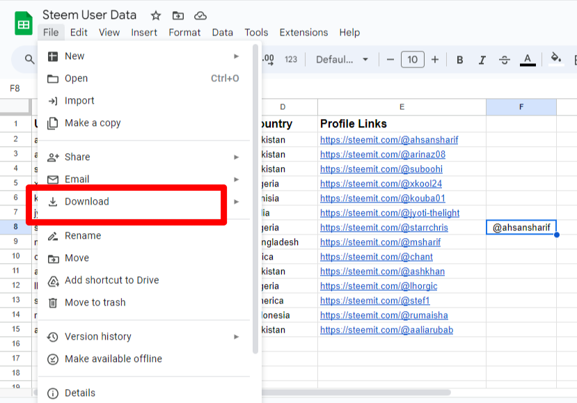 The purpose of using this is that we share our data with others in any form. Or we transfer any data from Google Sheets to any software system. Or we use it for security purposes when we need a backup of our data.