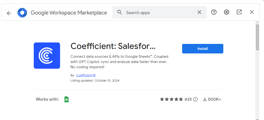 Coefficient is a Google Sheets add-on that allows importing data directly into Google Sheets from database CRM and business platforms. It is a more advanced tool for dynamic data management and can automate data updates.