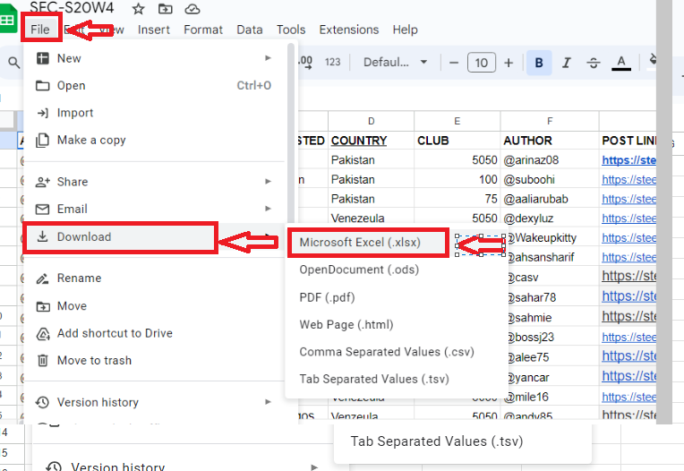 Share with us the needed procedures for converting Google Sheets Files to Excel File using the Google Sheet that You created in Lesson 4 and detail out the limitations that you observe while importing and exporting your data.