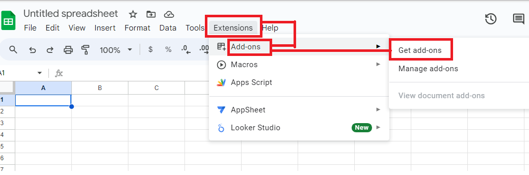 So now we will use this method. And I will tell you the complete method step by step. First of all we will go to the Google sheet that and then i will cl;ick on the option EXTENSION. where I see another option Add ones. And then I will click on Get Add ones
