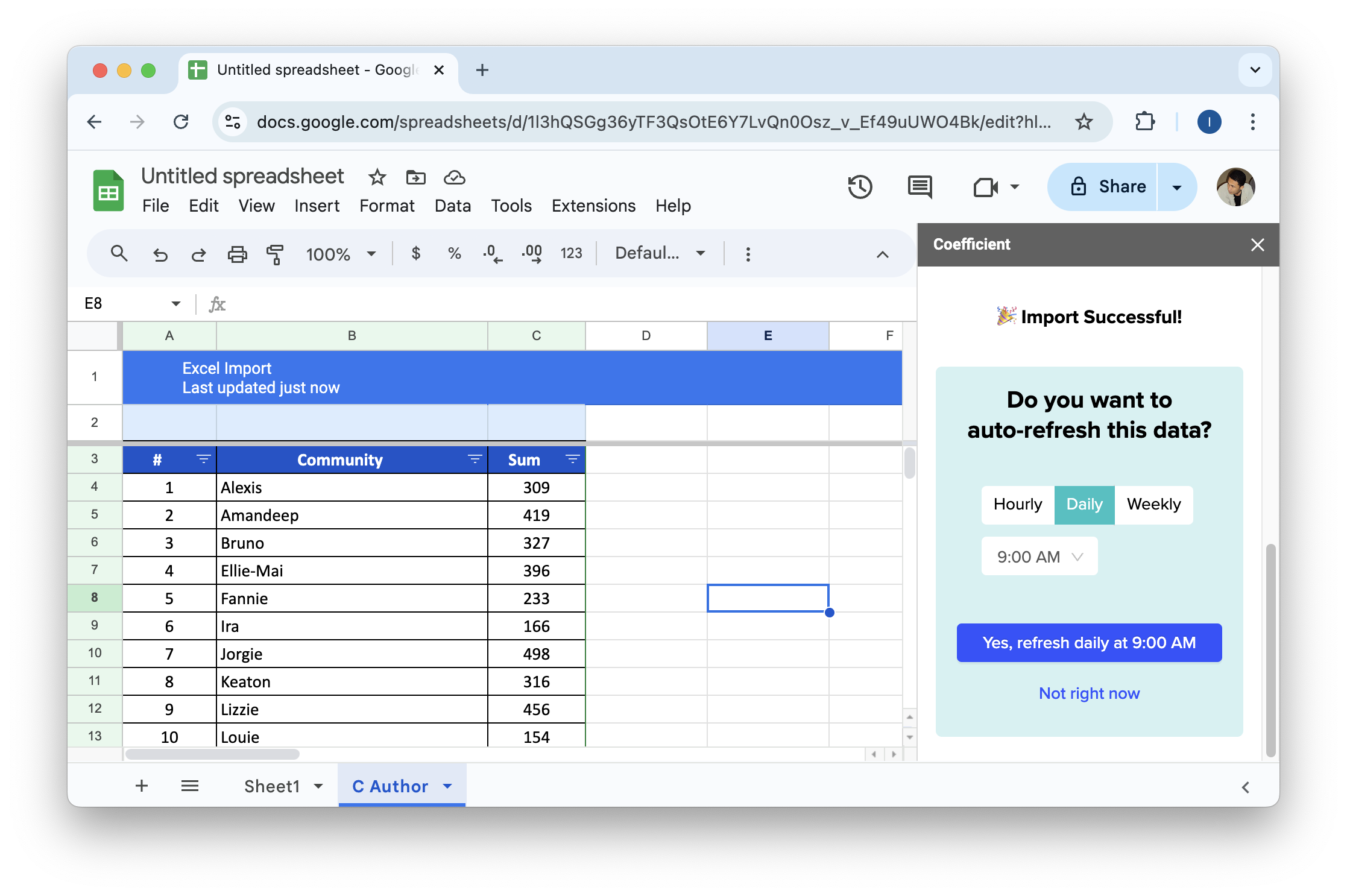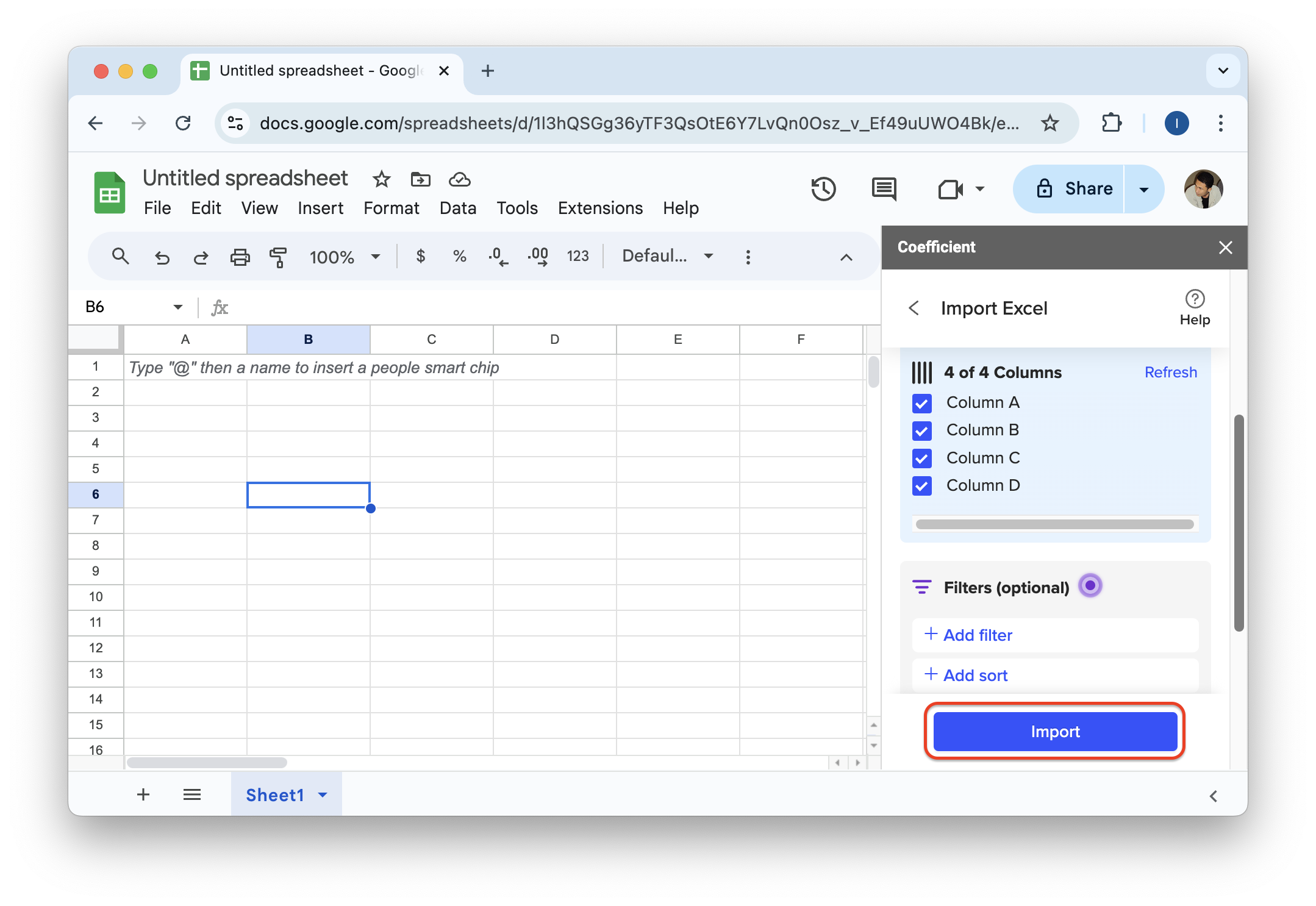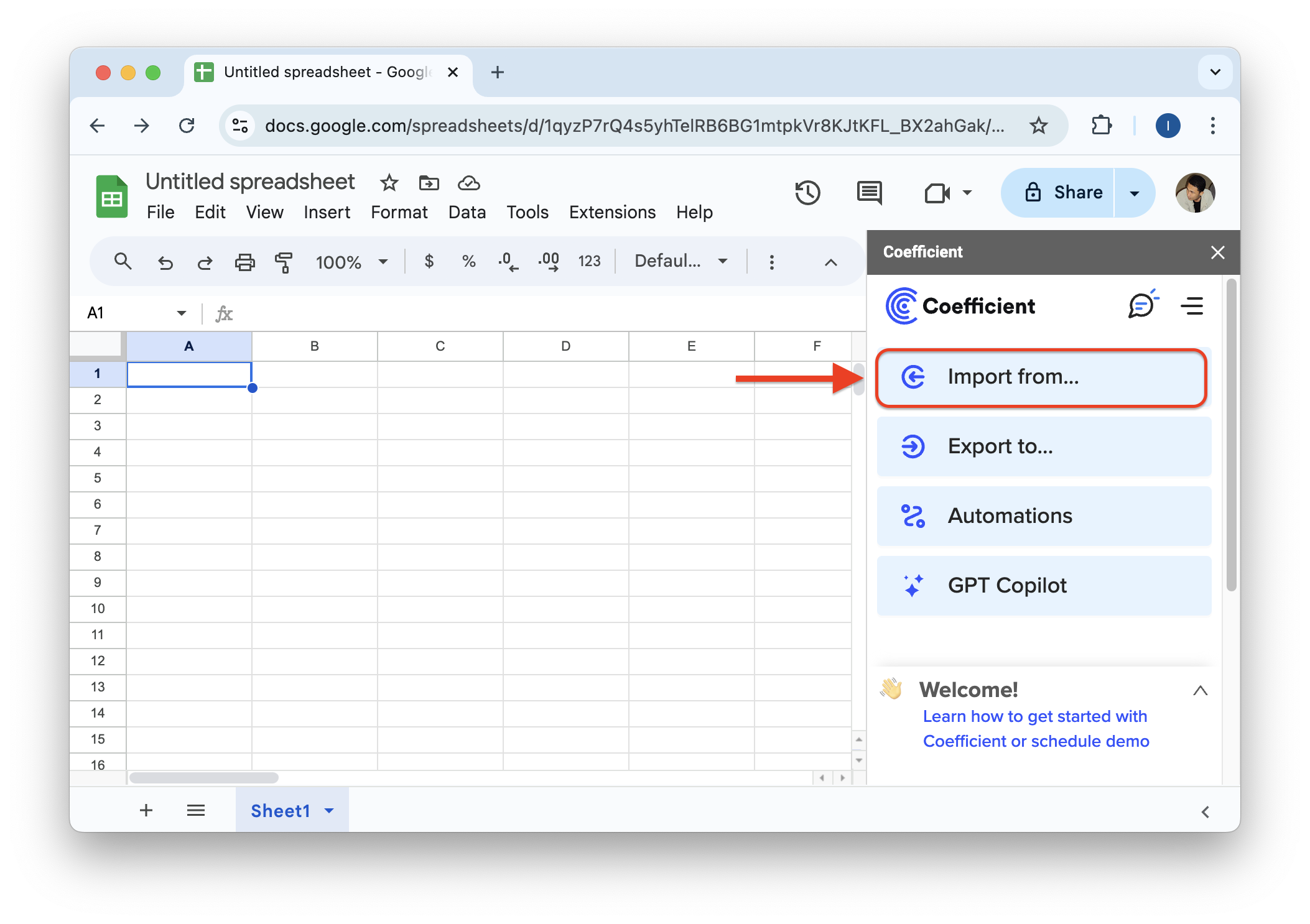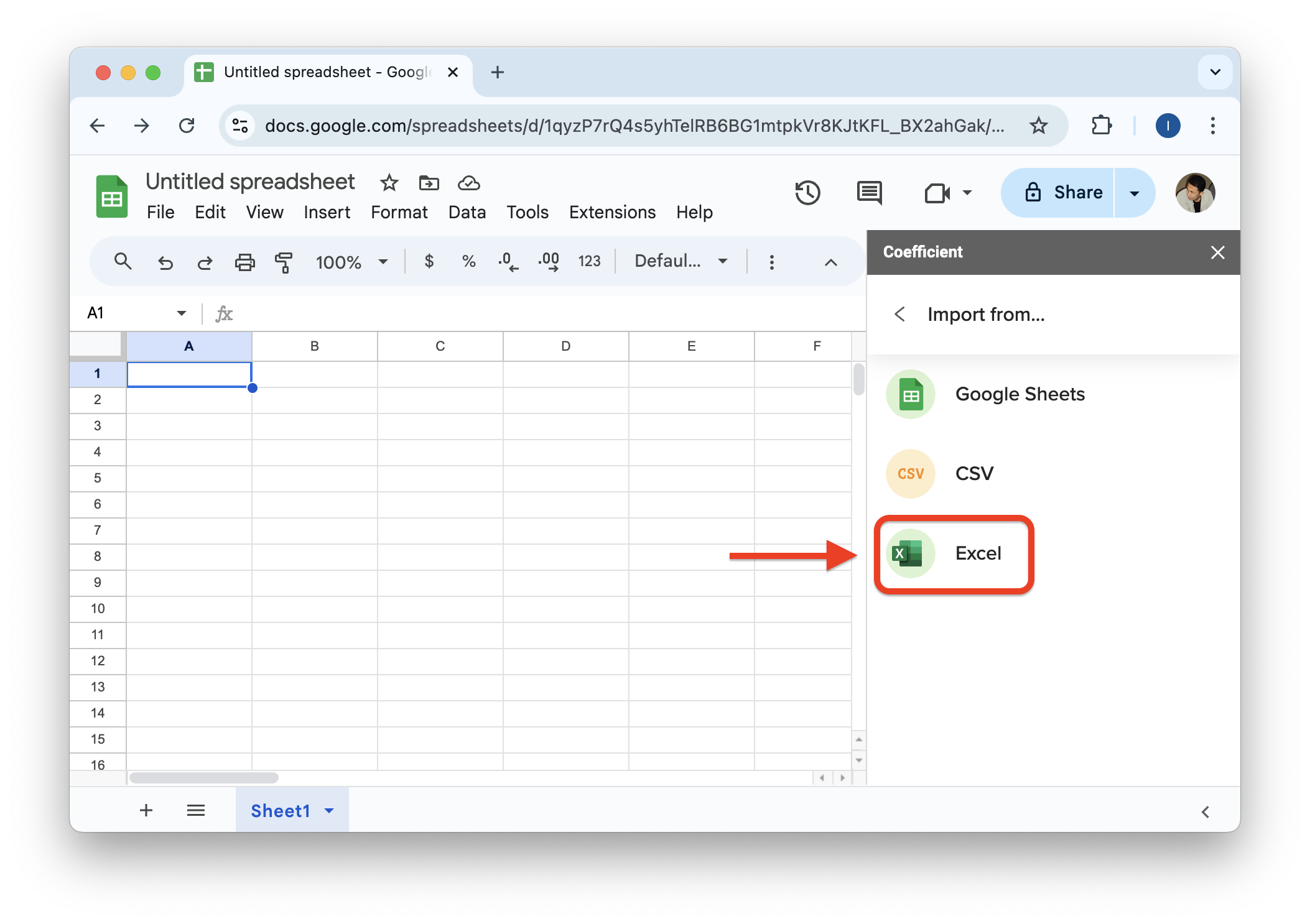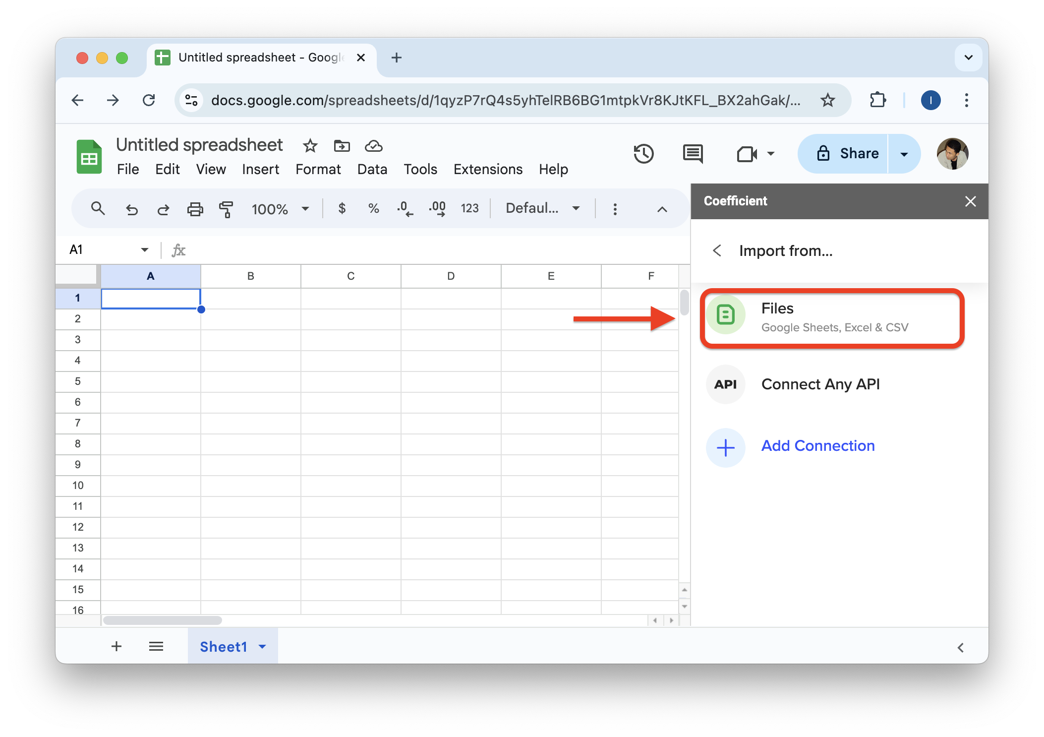 To import data, you can import data in various file formats from various sources, for example from My Datasets, from files in Google Sheets, Excel & CSV formats, with Connect Any API and various other data sources connected to Coefficient.