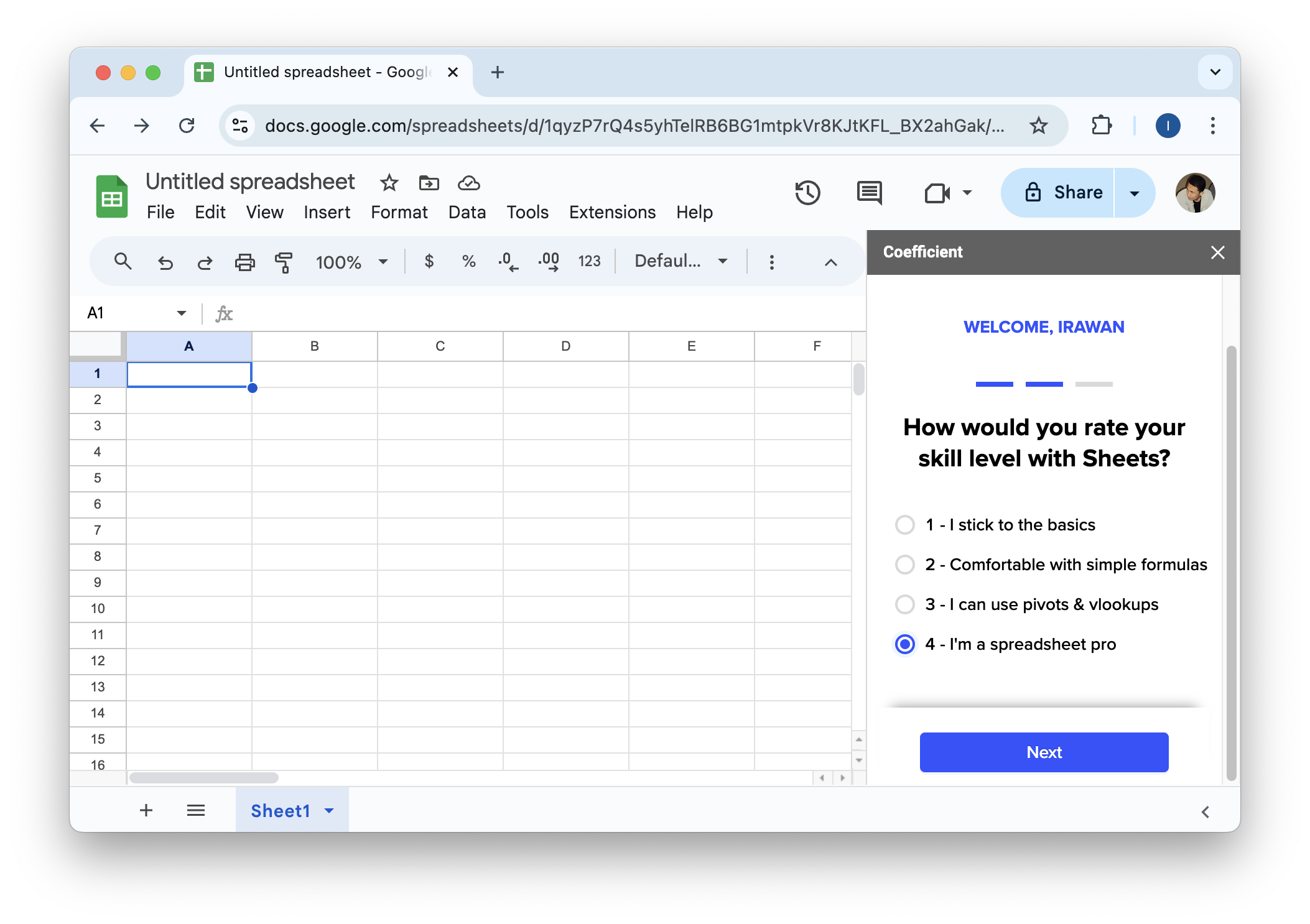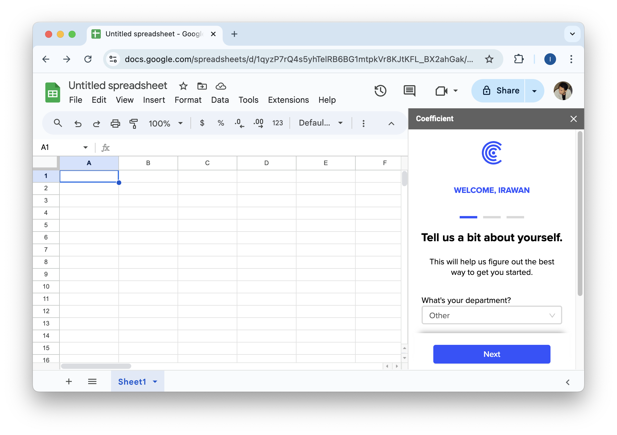 Enter information about yourself according to the list provided, this is an important part that must be completed so that you can proceed to the next stage and the coefficients extension will be integrated with your spreadsheet.