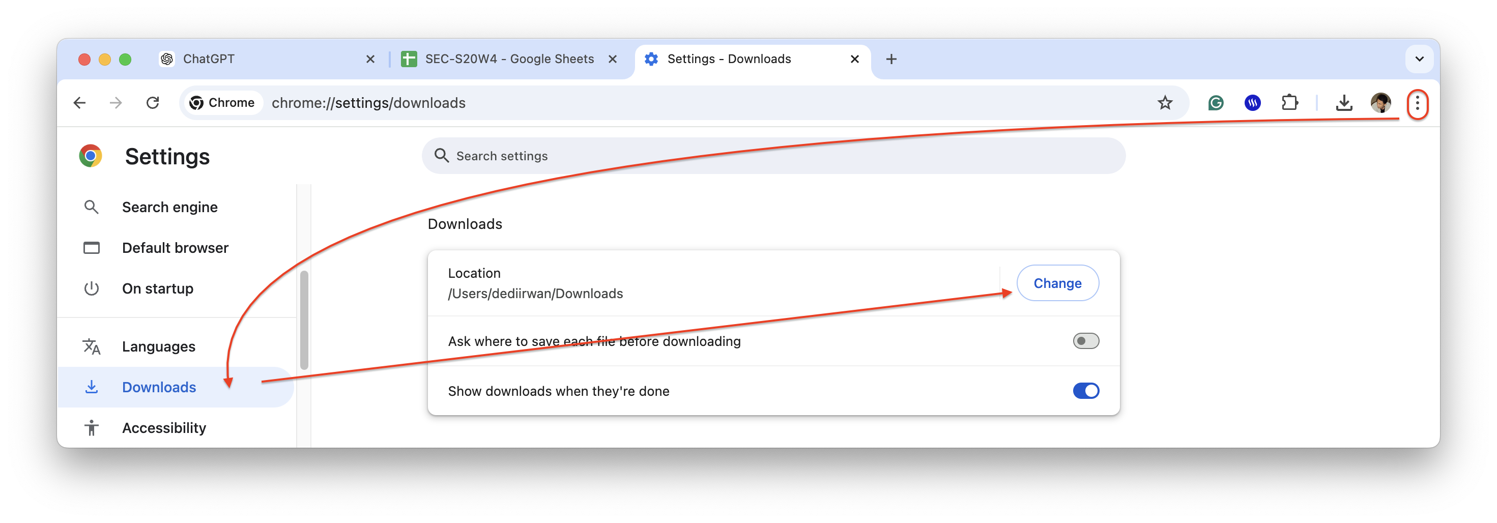 To find the location of the downloaded file, press the (⬇️) sign next to the user's profile picture, you will find the downloaded file in the download partition. but the downloaded file depends on the Browser system settings that are set.
