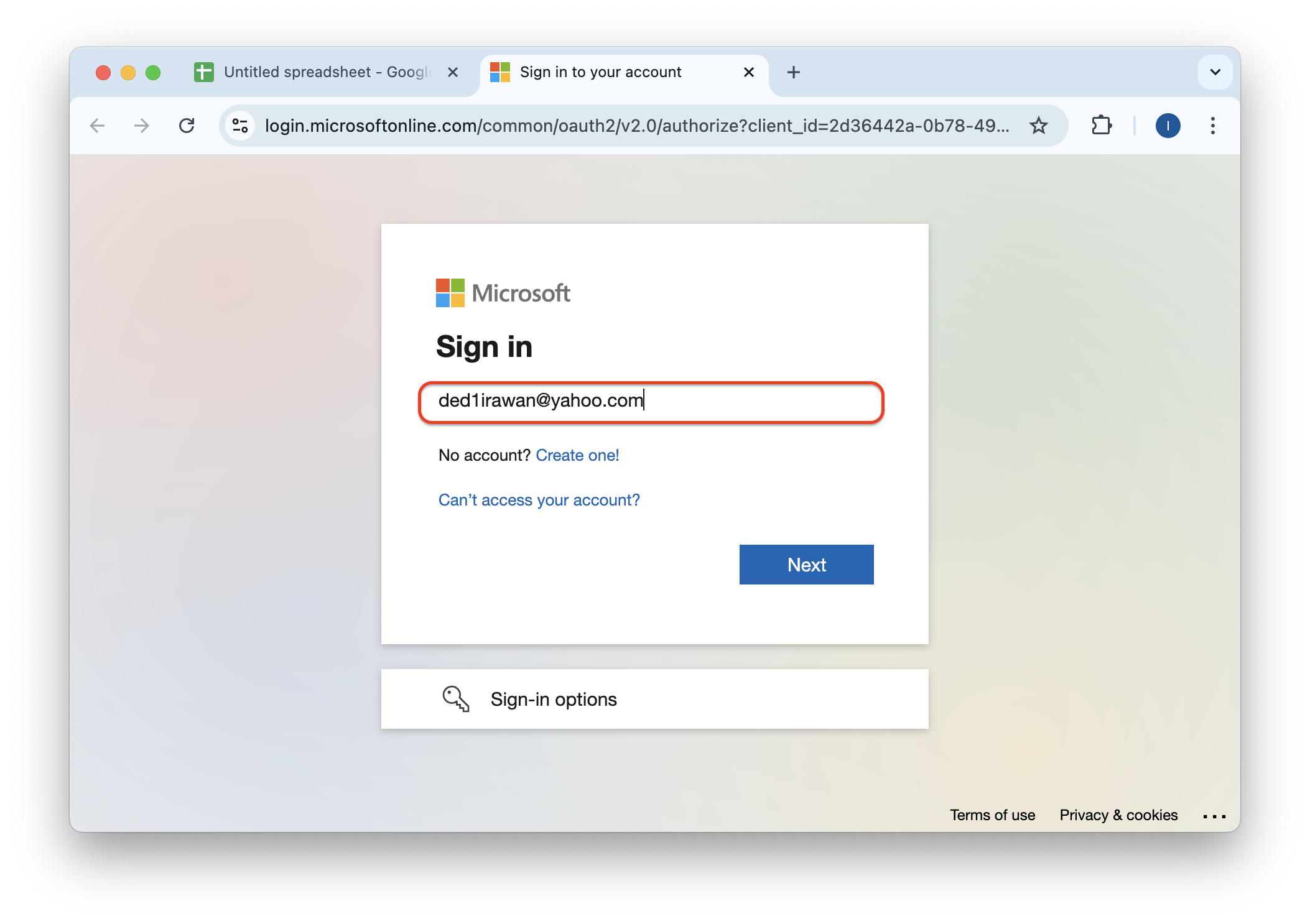 I will import data from a worksheet that I have saved in One Drive, then the second image shows that to import data, you must first log in with your Microsoft account, so that later the data/files stored in the One Drive cloud will be connected to Coefficient.