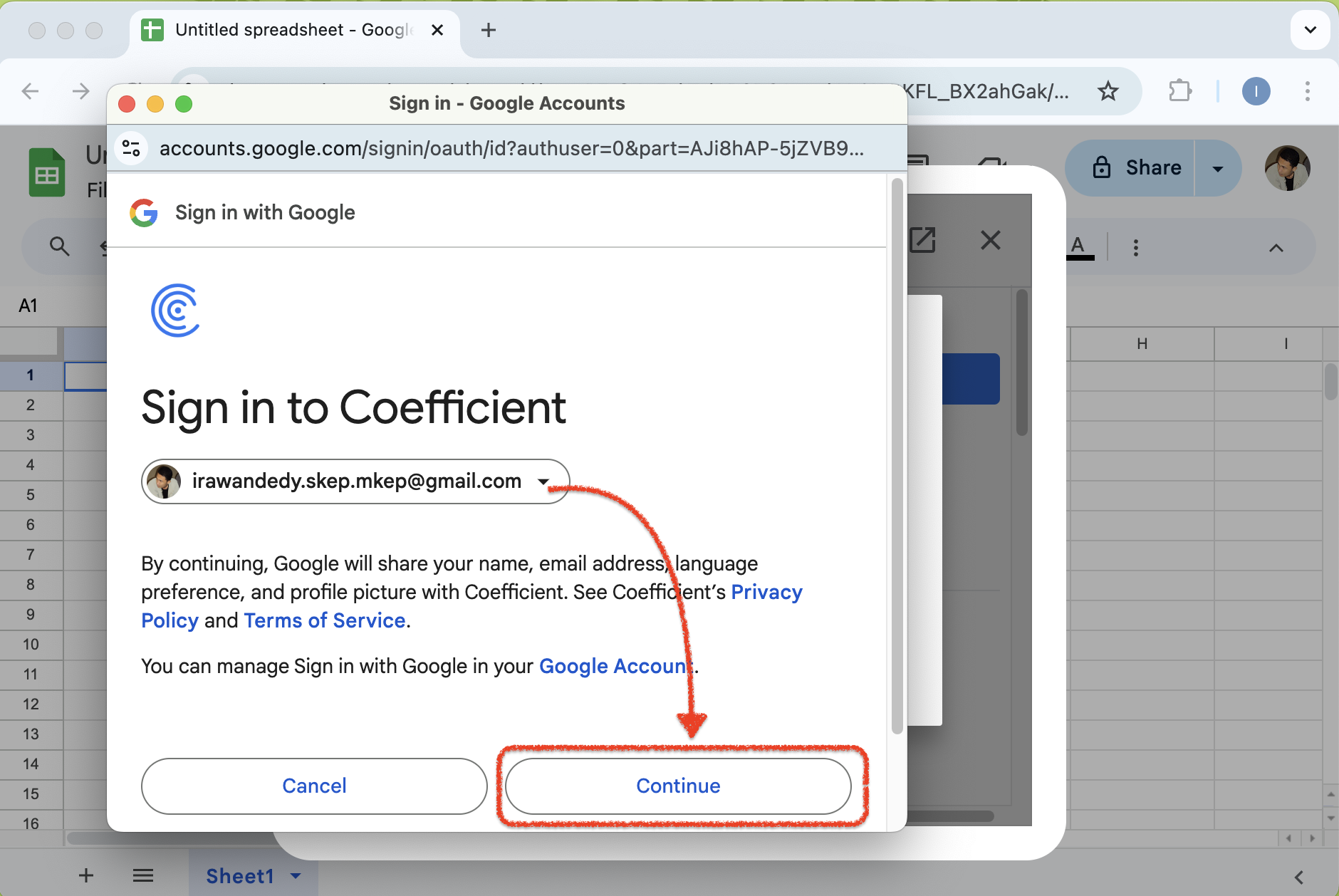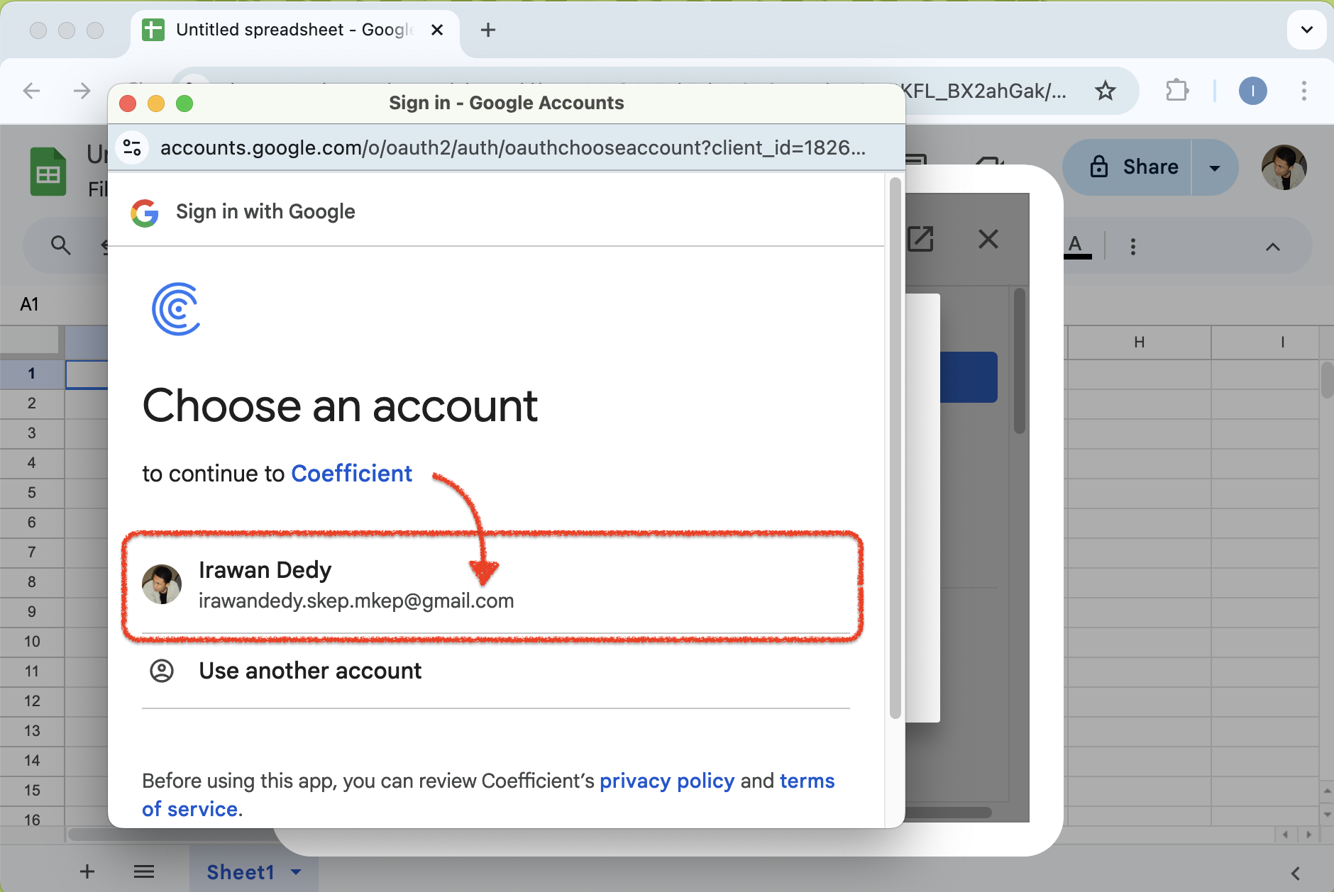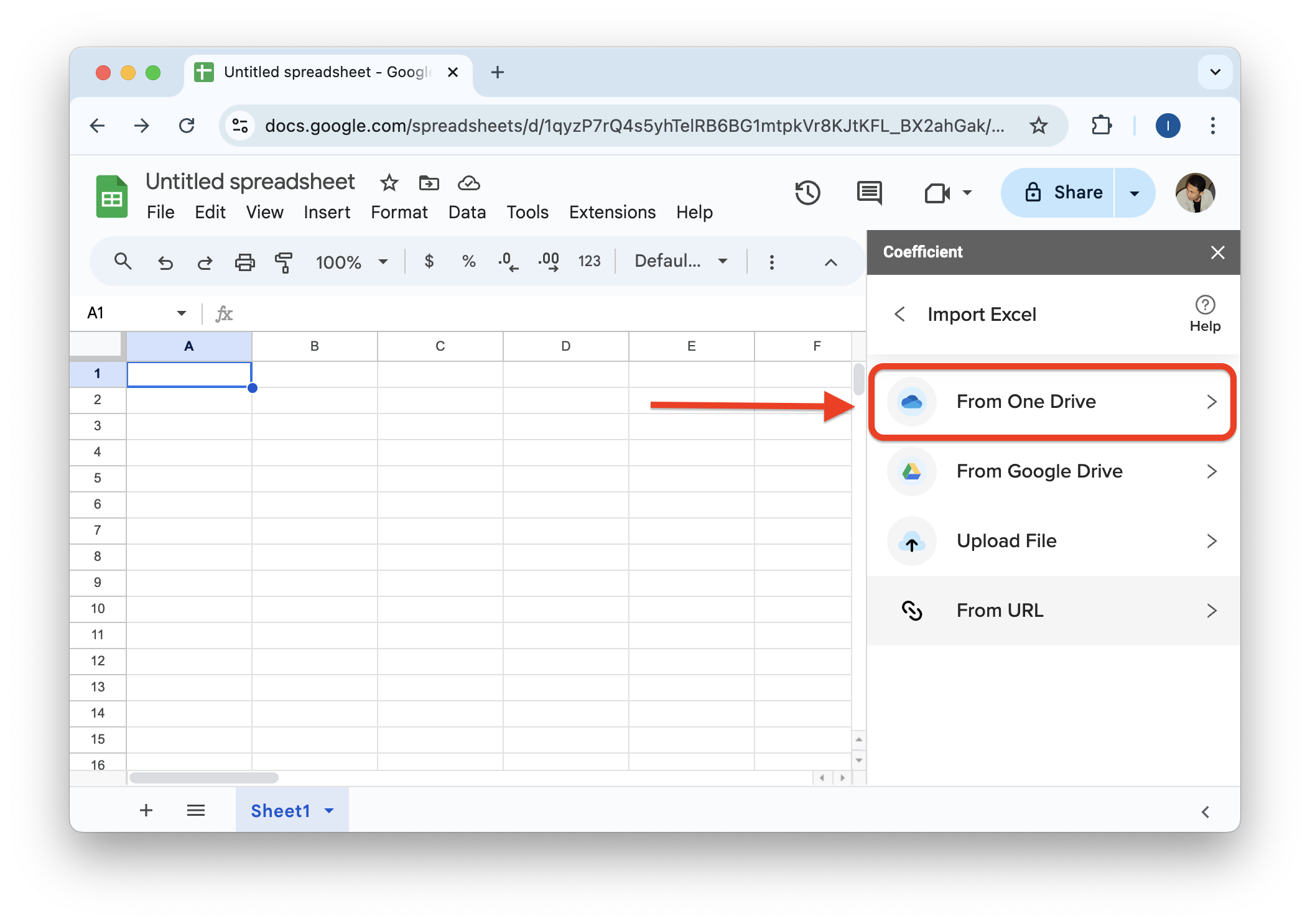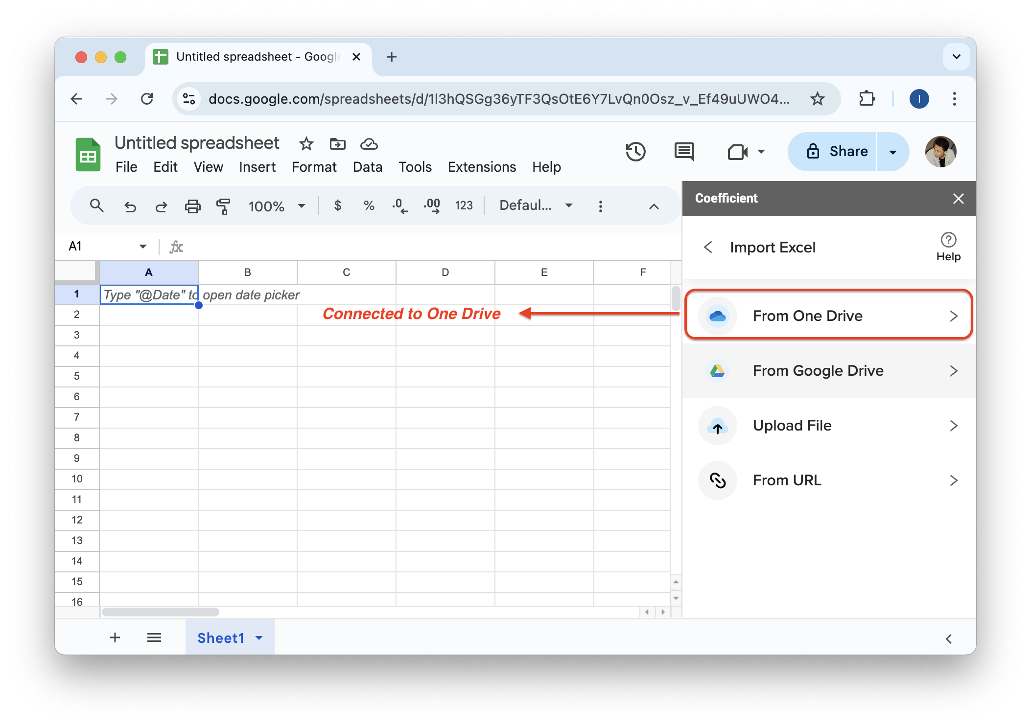 I have tried to connect Coefficient with Google Drive but until now it has experienced problems, so I chose another alternative, namely using One Drive as a cloud that is used as a storage medium for data that will be imported in this learning.