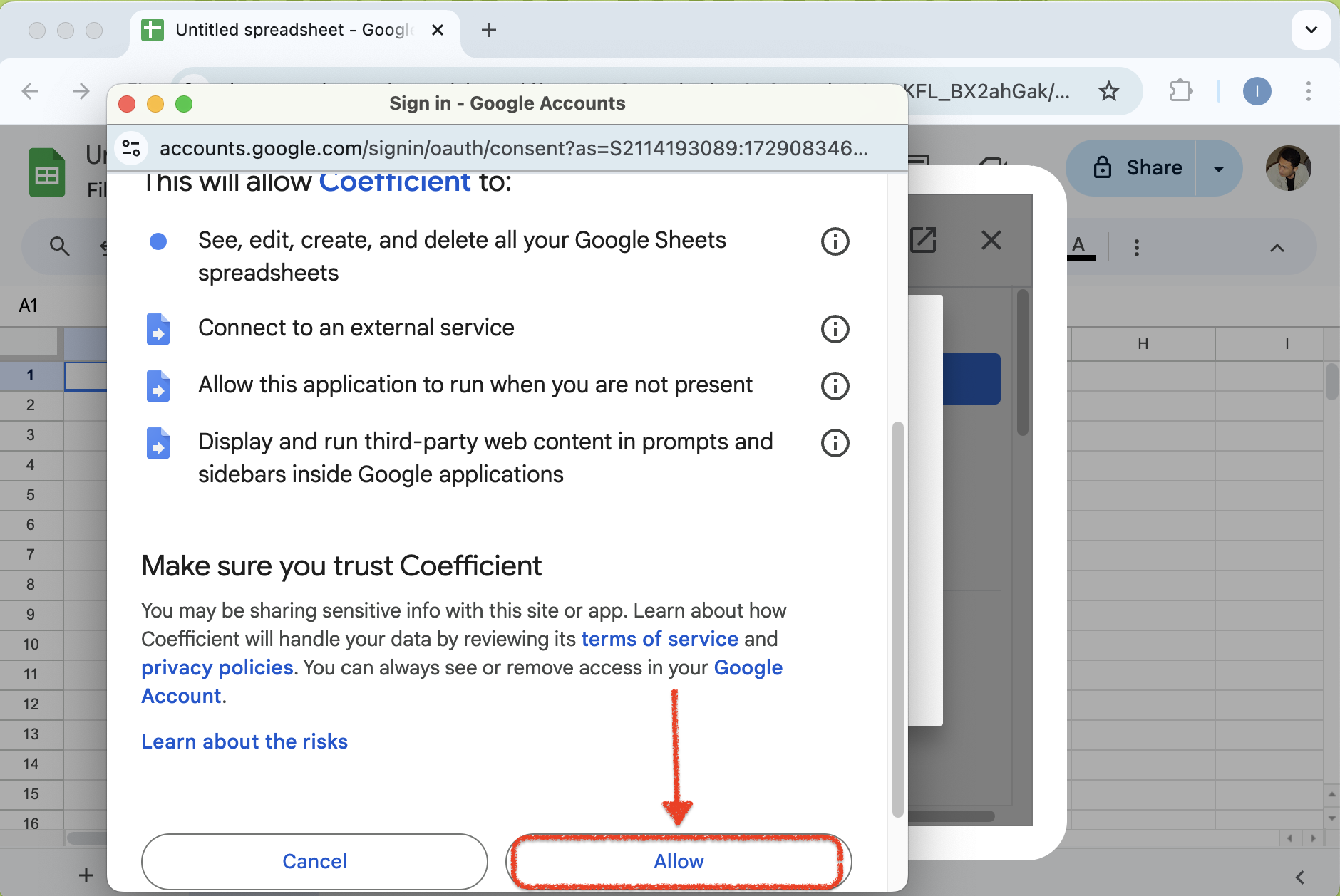 Grant access permission to your account, by granting access to account authority, meaning that this app will connect with other tools so that it can continue importing the required data.