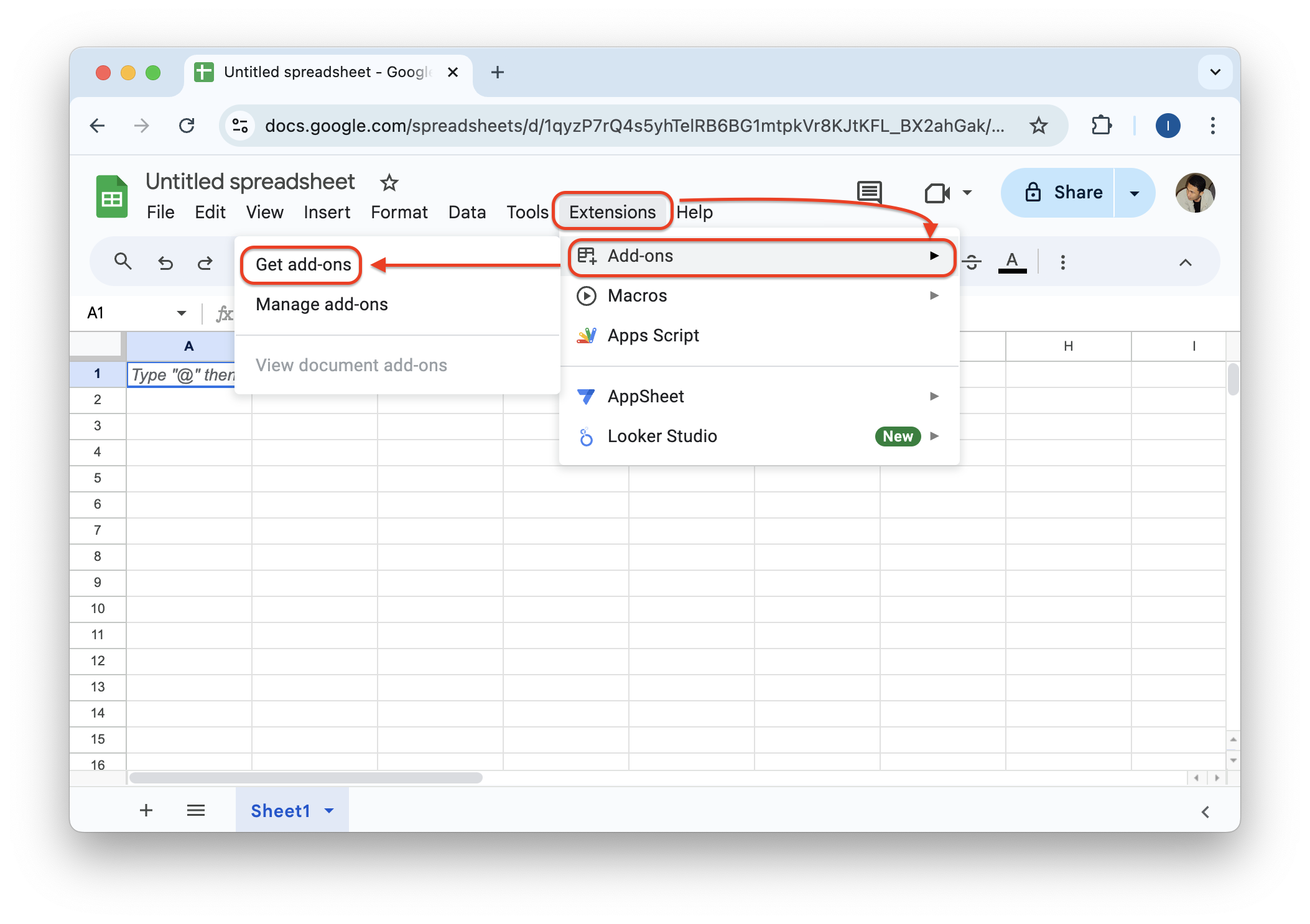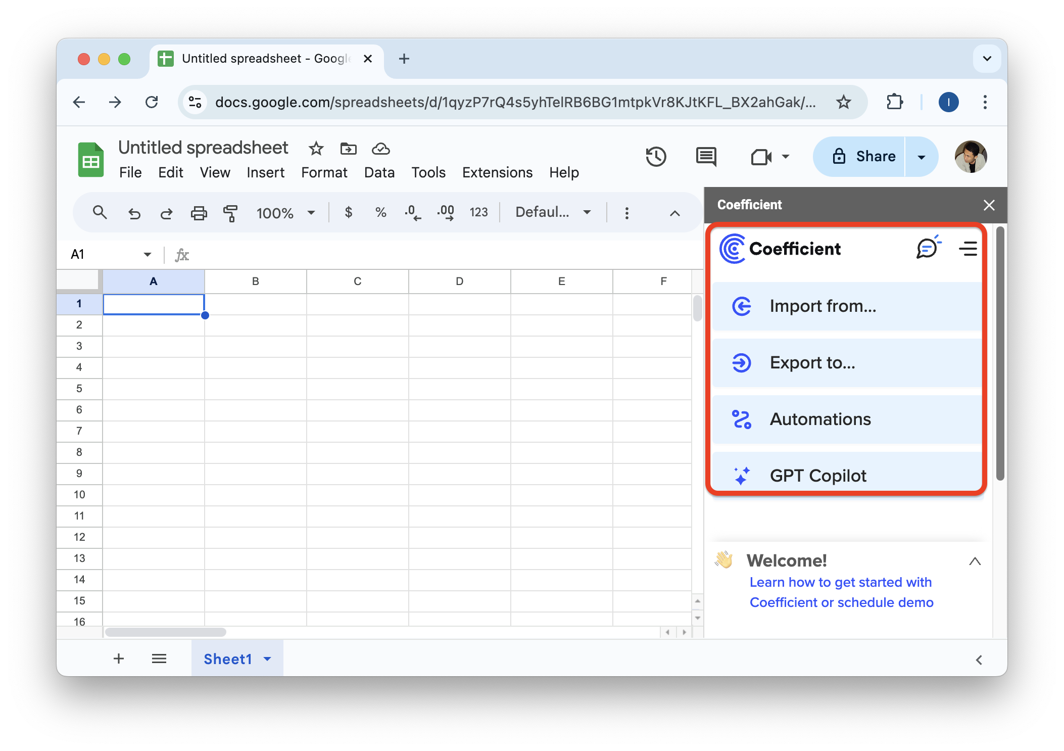 Before importing data into Google Sheets, an important step that must be taken is to add coefficient from the Google Sheets extensions. Pay attention to the two pictures below.