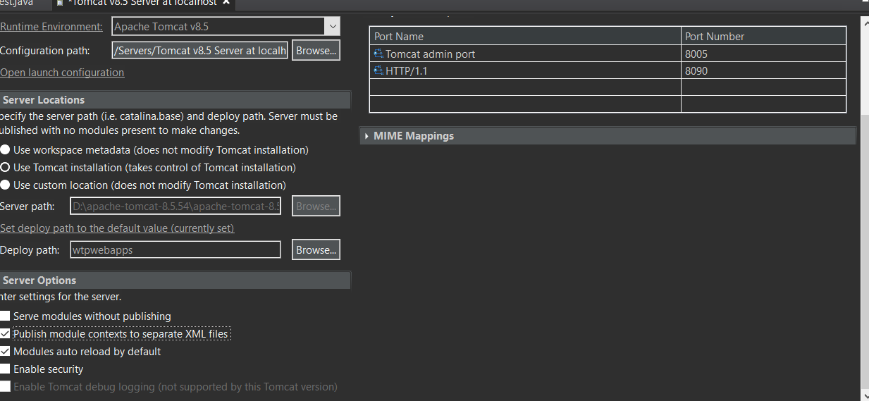 5.set tomcat server like bellow and save, then test if it works well