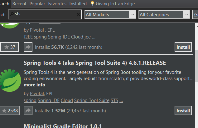 - search 'sts' , then press install