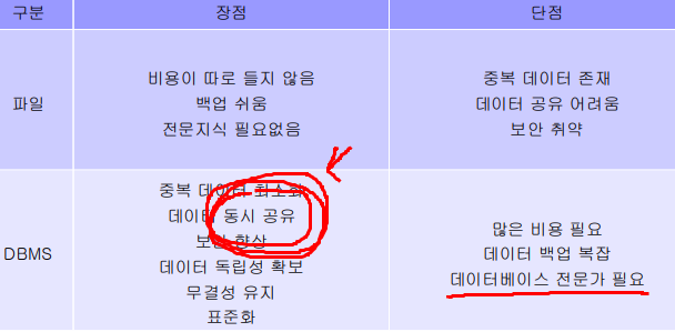 데이타베이스 : DBMS(DataBase Management System) : 여러사람이 공유, 사용할 목적으로 통합관리되는 정보의 집합