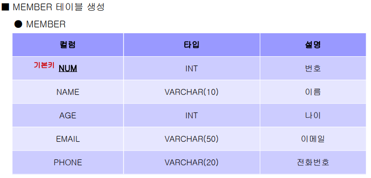 CREATE TABLE MEMBER (