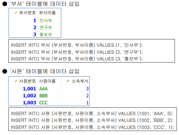 VALUES(속성값리스트); => INTO의 속성과 순서대로 1:1대응 VALUES 뒤에 삽입할 속성값 입력