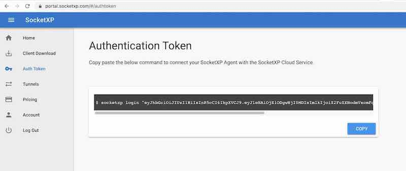 Sign up at https://portal.socketxp.com and get your authentication token.