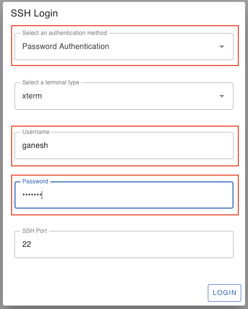 SSH password based authentication is typically seen as a weaker and less secure option, making it unsuitable for production environments. Instead, SSH Public Private key based authentication is a highly secure alternative and is strongly recommended for any production usecases.