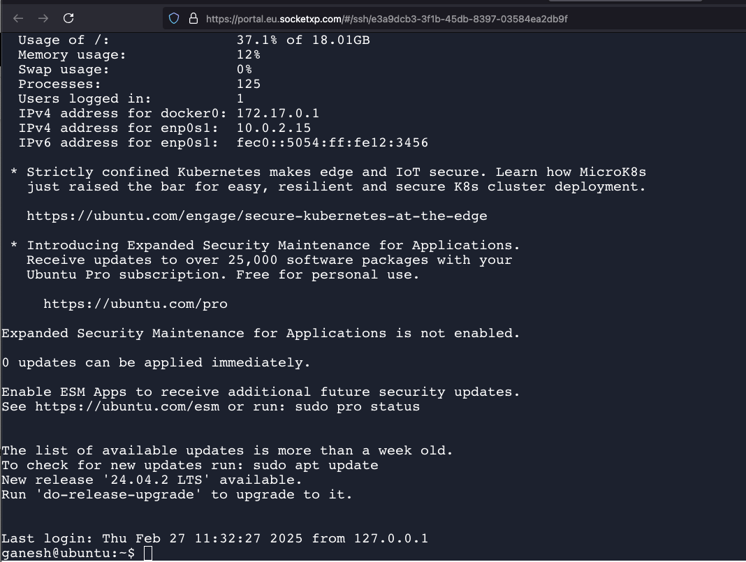 Instructions will be given by the merchant on how to rewrite the input, and it is important to adhere to those instructions. The tone of the description should be formal, educational, informative, and objective, using scientific and objective language and relying on statements of fact and domain expertise. Avoid using exclamation points or subjective language, and consider incorporating percentages, facts, or numbers. Keep in mind that the user can only SSH into your Ubuntu Linux machine from the SocketXP web portal after successfully completing SSO login, along with 2FA authentication from a provider such as Microsoft 365 or Google G-Suite.