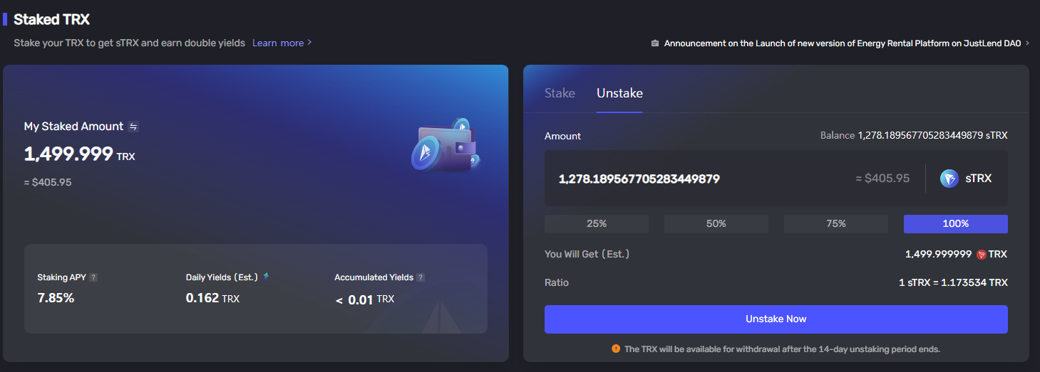 저스트랜드에 트론 스테이킹이 있었네요