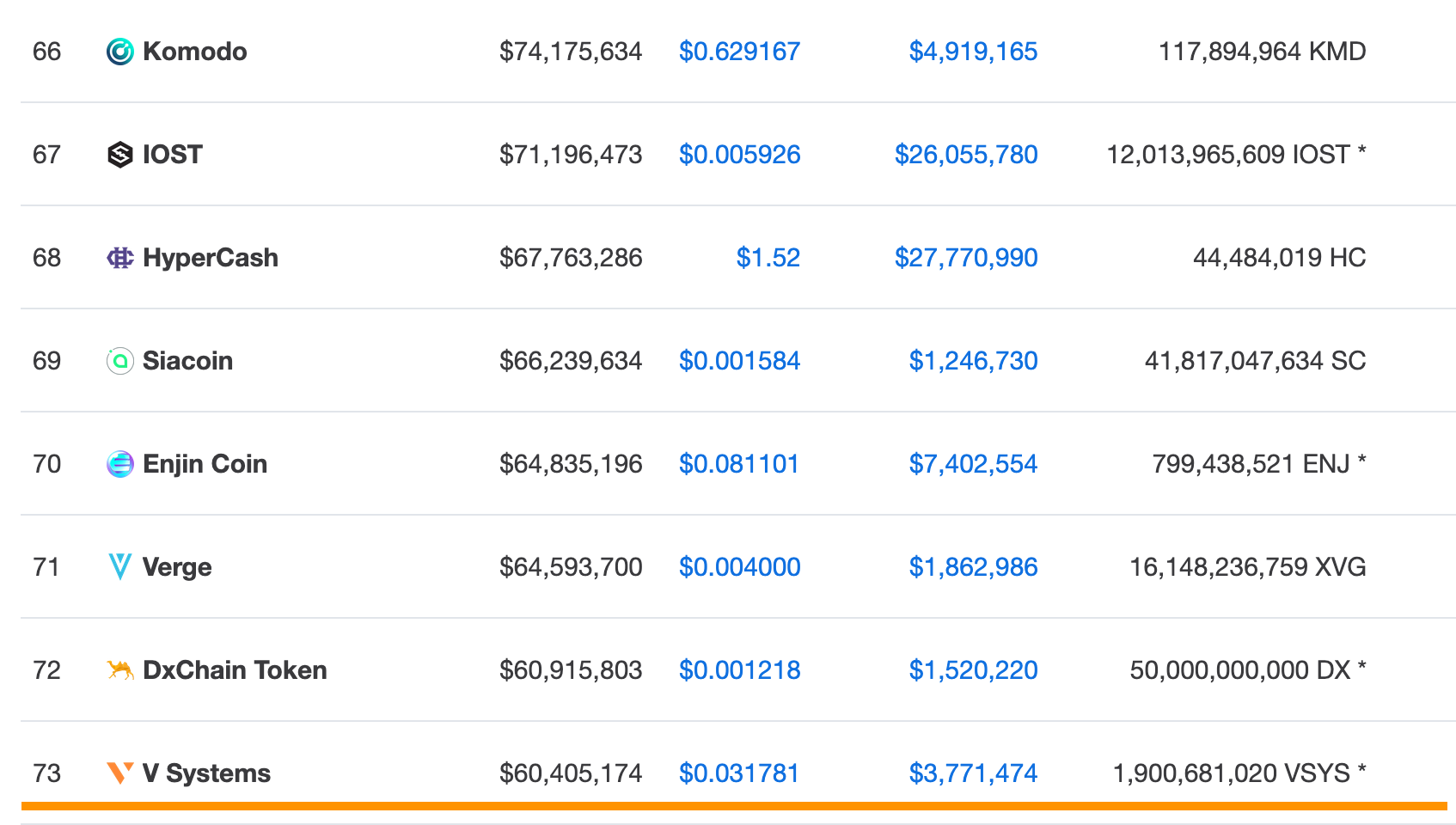 VSYS is now ranked at #73 on CoinMarketCap, with a market cap of over US$60 million.