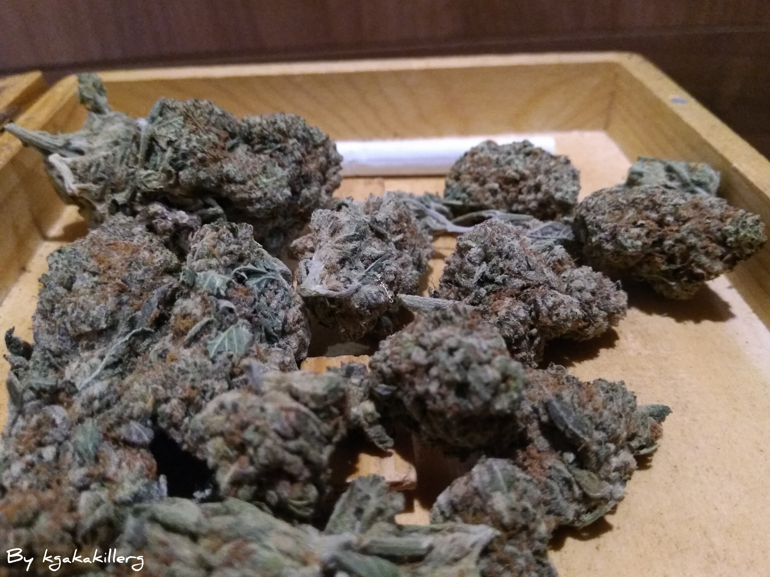 Hi everyone good morning hope you are all good and well today here's some photographs I just took of some lovely star dog bud I got from a good friend of mine I got this bud about two weeks ago now just look at those beautiful nugs of goodness this is actually my first cannabis post this year