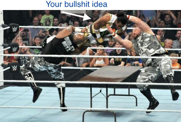 You will need plenty of both. Because some of your ideas will not stand up to the glaring Light of Data. Some will fall to the Goliath of other people’s Opinion. And some of your assertions, the hardest ones to kill, will be so resilient as to require a tag-team of elbow drops off the top turnbuckle from both of the Dudley-Data and Opee-nion Boys.