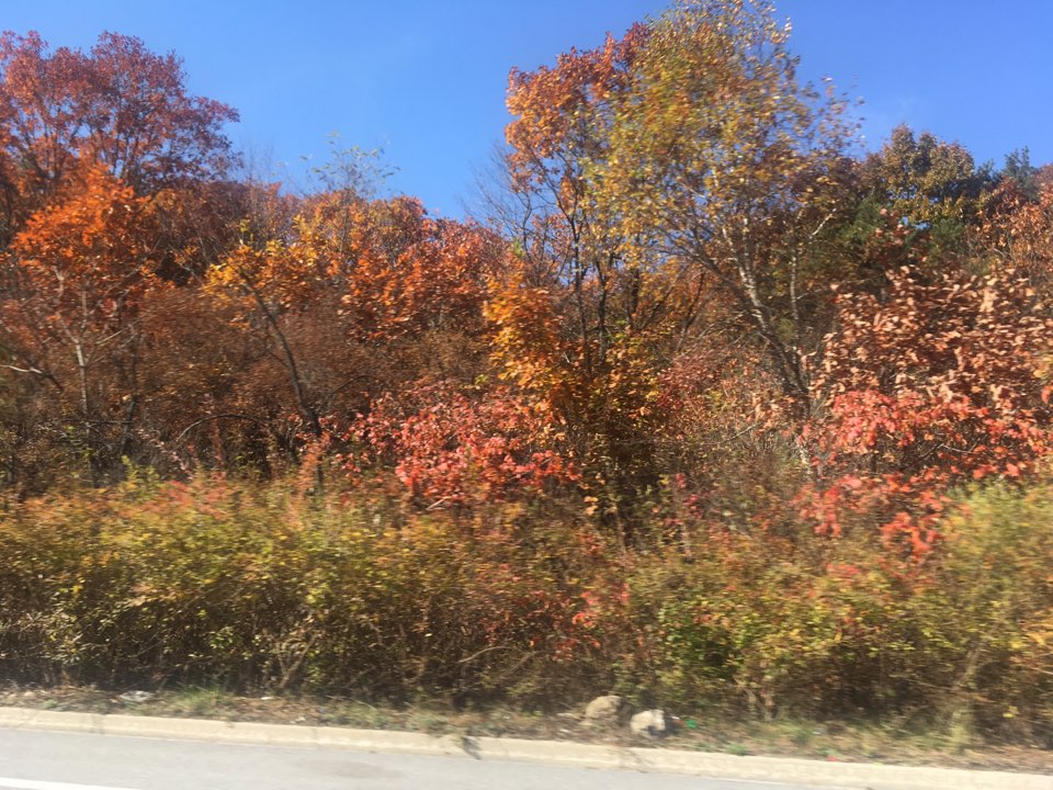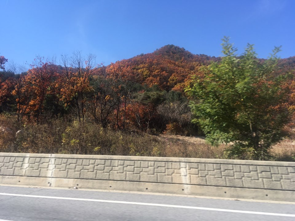 점점이 박힌 빨갛고 노란 단풍들도 옆으로 지나갑니다.