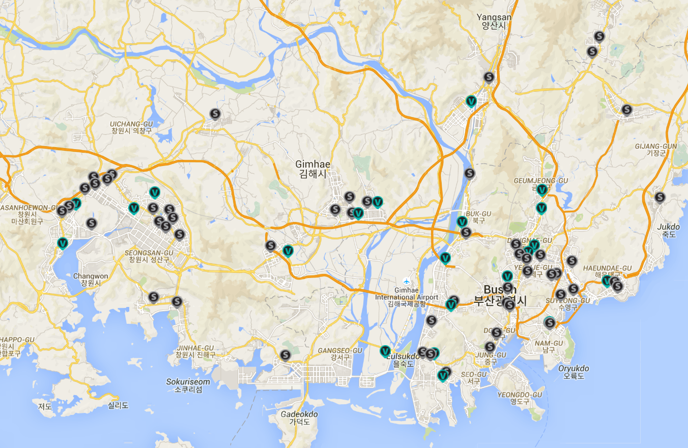 부산을 포함해서 창원, 김해, 양산에 있는