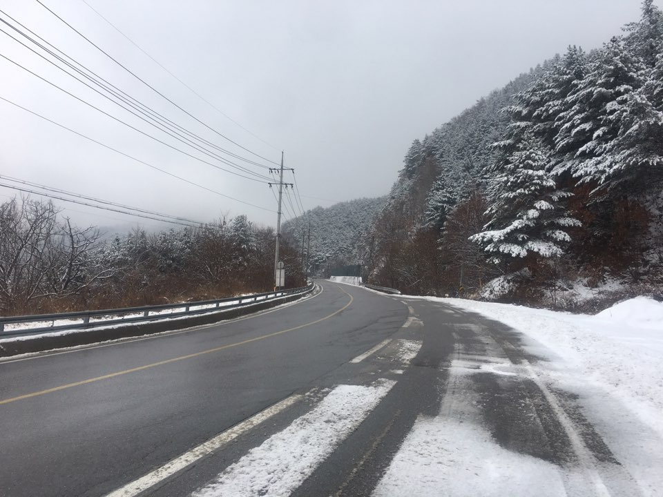 꼬부랑 할머니의 등 같은 산길을 달리는