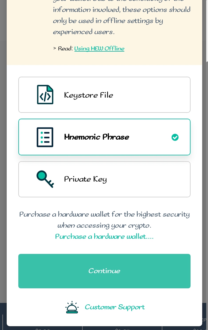 - To access your wallet, choose to access it using the mnemonic phrase. Click on continue and input your mnemonic phrase. Finally, you can have access to your wallet where you can copy your ETH address for receiving payment on CanWork platform.