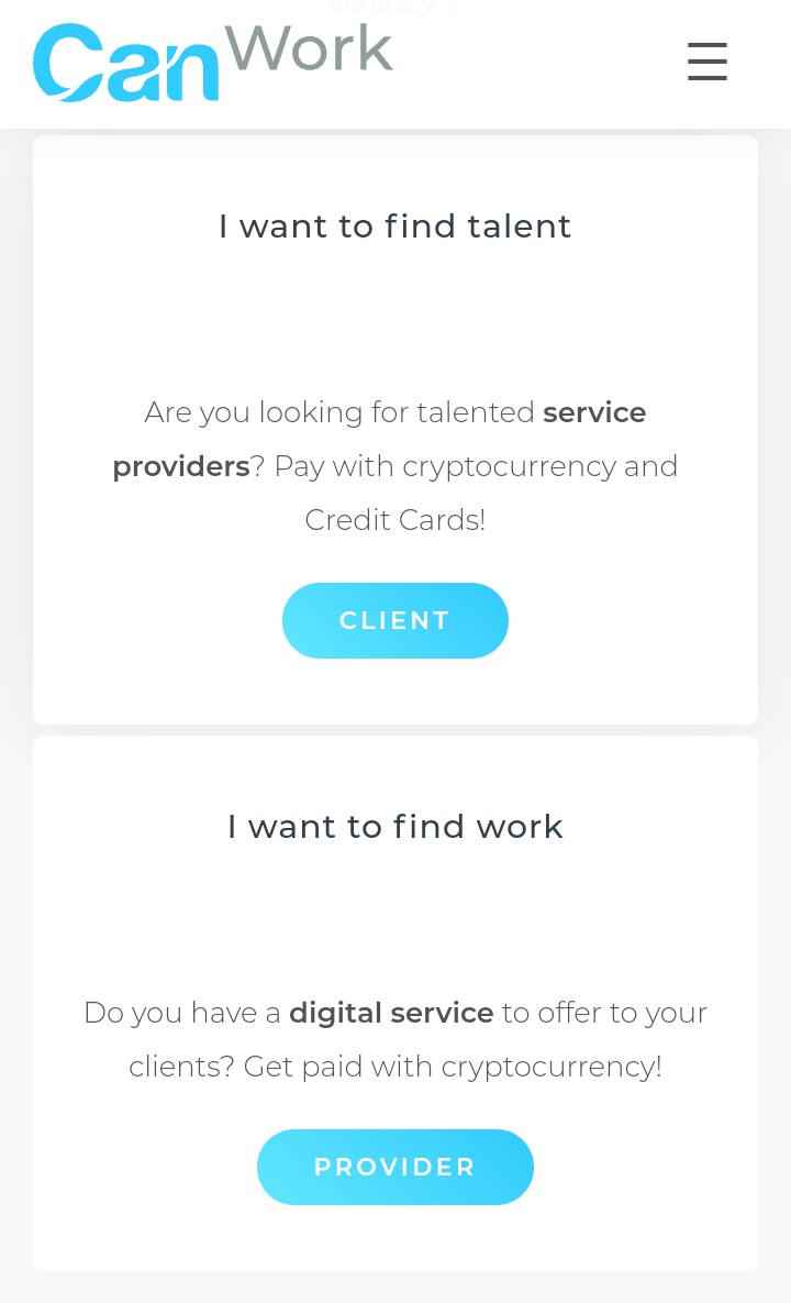 - Choose Your Aim: After a successful login, the next page you will see is for you to choose why you signed up on the work platform. If you are in search of a talented freelancer, click on the "client" button. And if you are a talented individual who wants to render his/her services to a client, click on the "provider" button.