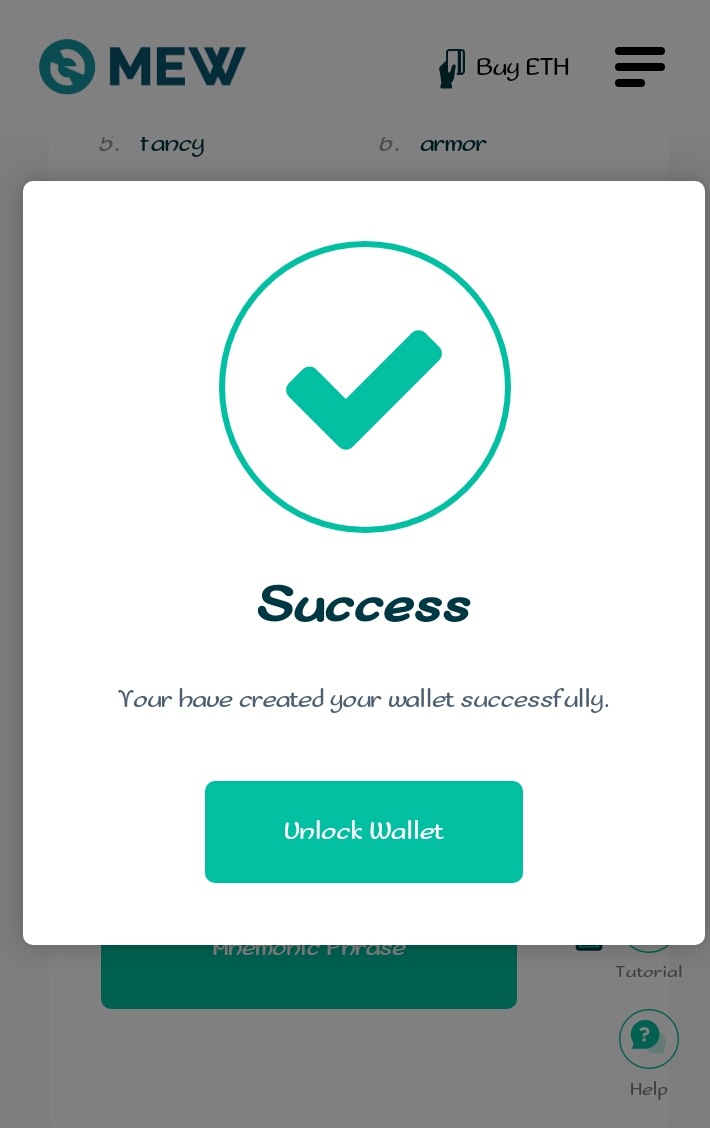 - Click on the "Create Wallet" button. Choose to create a wallet by mnemonic phrase and write down the twelve (12) phrase you see on a paper.