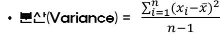 분산이란 내가 가진 자료(데이터)가 평균값을 중심으로 퍼져 있는 평균적인 거리를 의미 합니다.