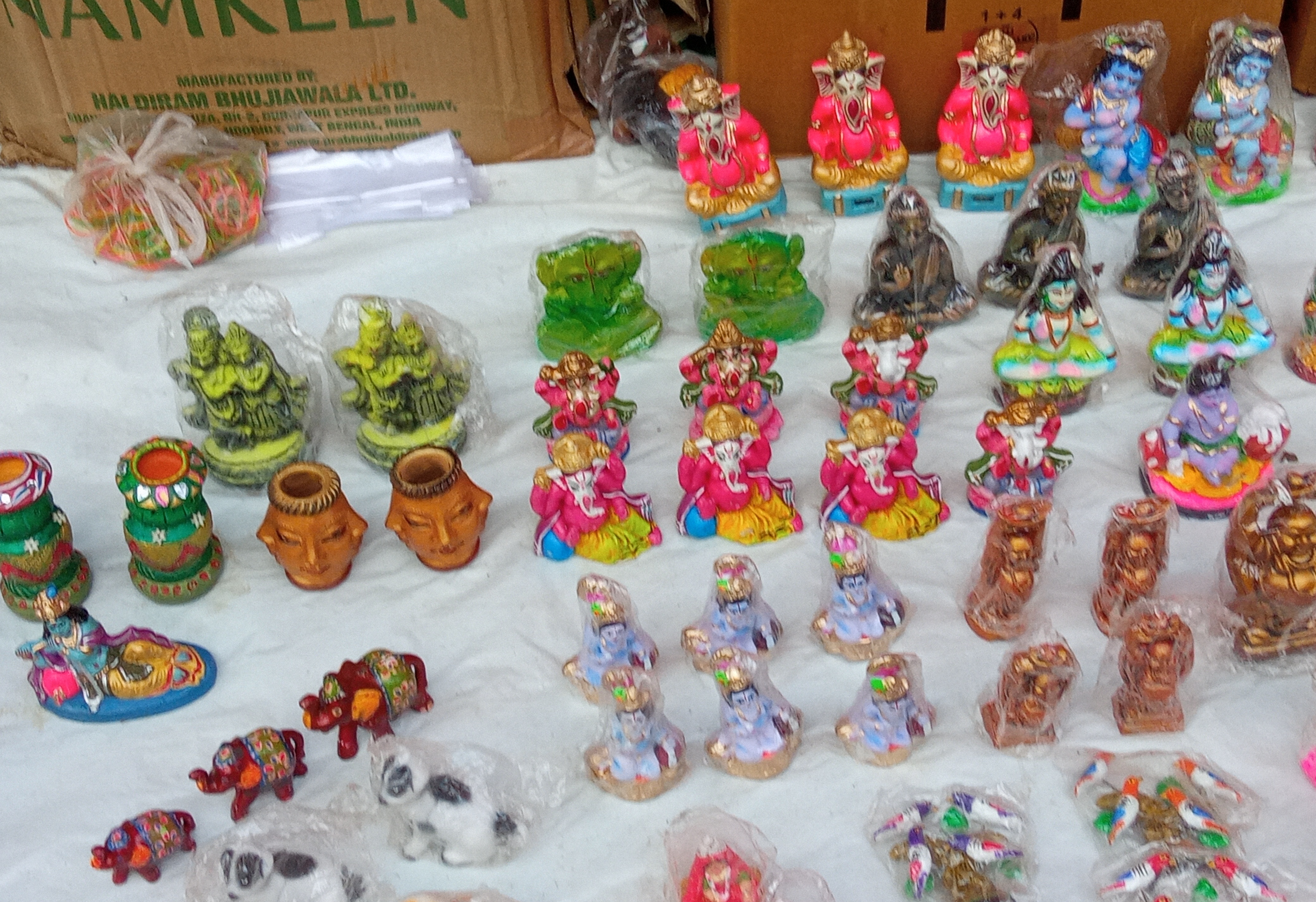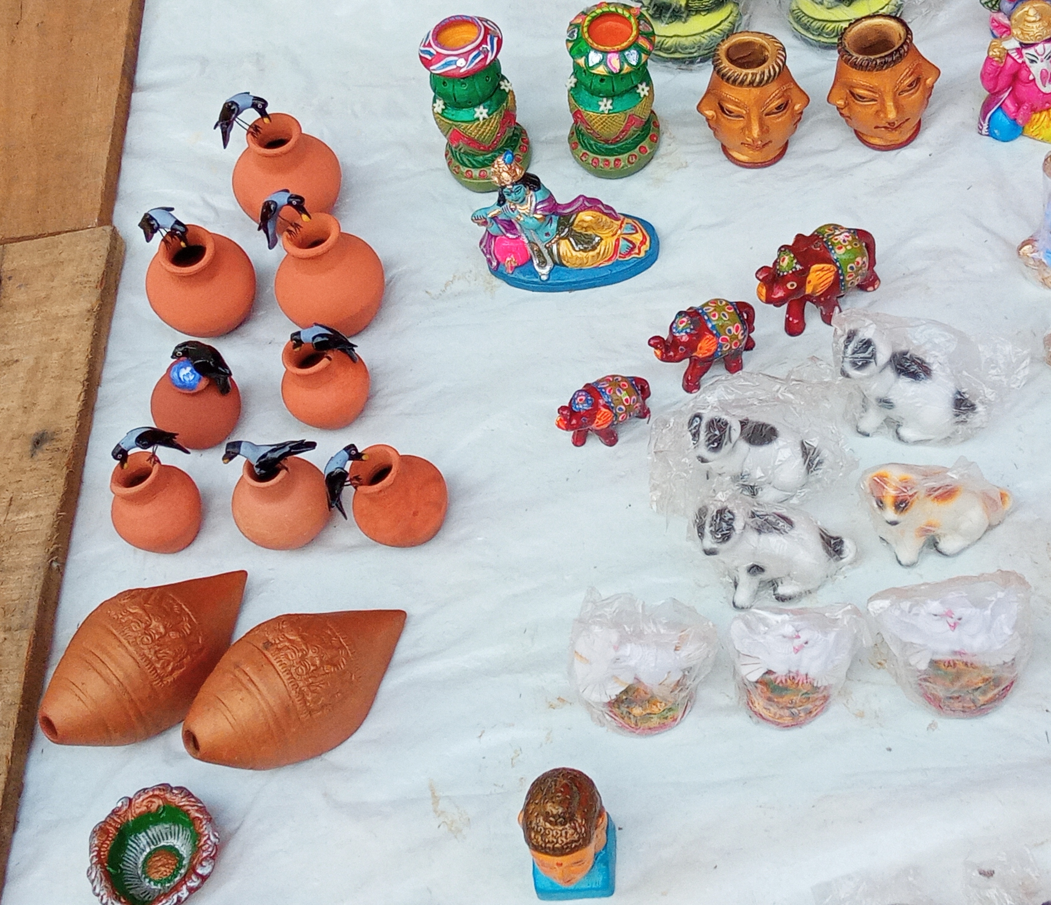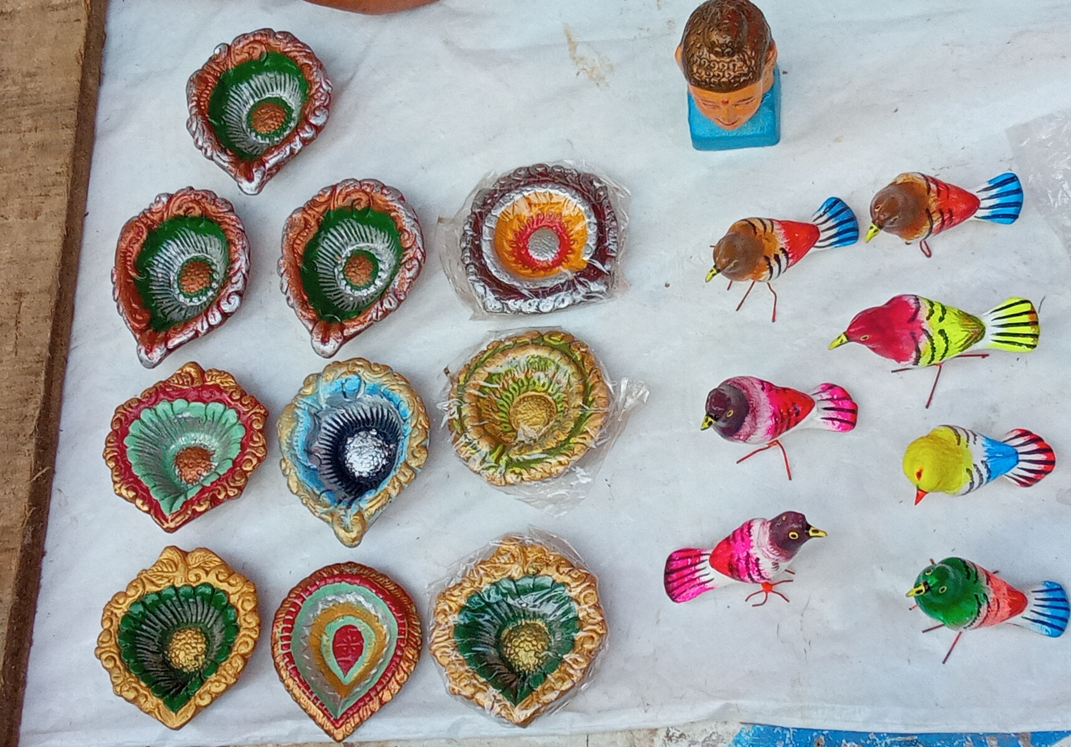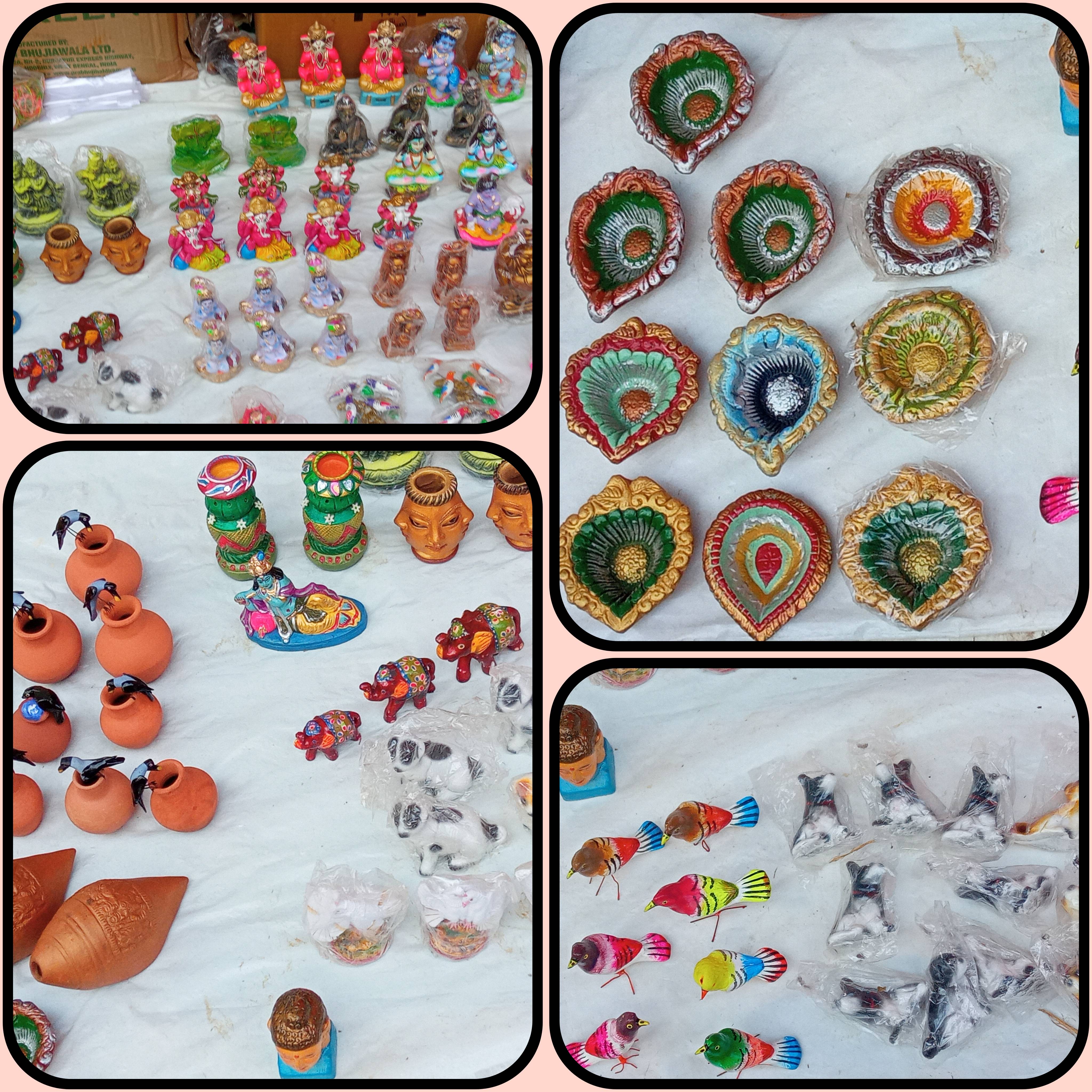 এখানে কিছু মূর্তি রয়েছে।যেগুলো সবই মাটির দ্বারা তৈরি।আর প্রতিটি মূর্তির উপর রং-তুলি দিয়ে অসাধারণভাবে ফুটিয়ে তুলেছেন শিল্পীরা তার আকৃতিগুলো।এখানে শিল্পীর নিজস্ব সৃজনশীলতা ও কাজের দক্ষতা ফুটে উঠেছে।এখানে রয়েছে বেশ কয়েকটি মাটির তৈরি প্রদীপ,একটি বুদ্ধদেব এবং কয়েকটি রঙিন পাখি।প্রত্যেকটি ভিন্ন ভিন্ন ডিজাইন ও রং দিয়ে তৈরি করা, যেগুলো সত্যিই আকর্ষণীয় ছিল।