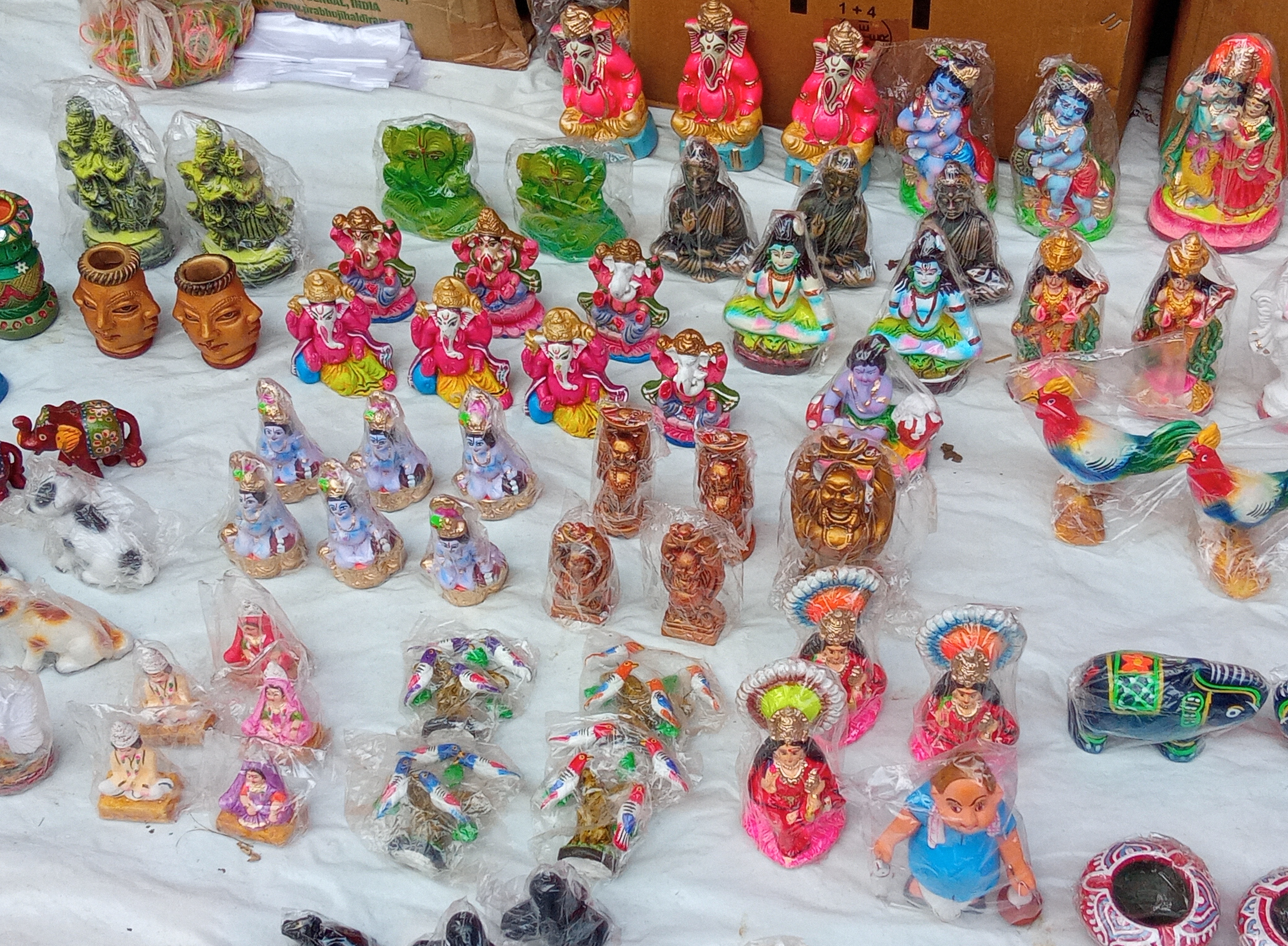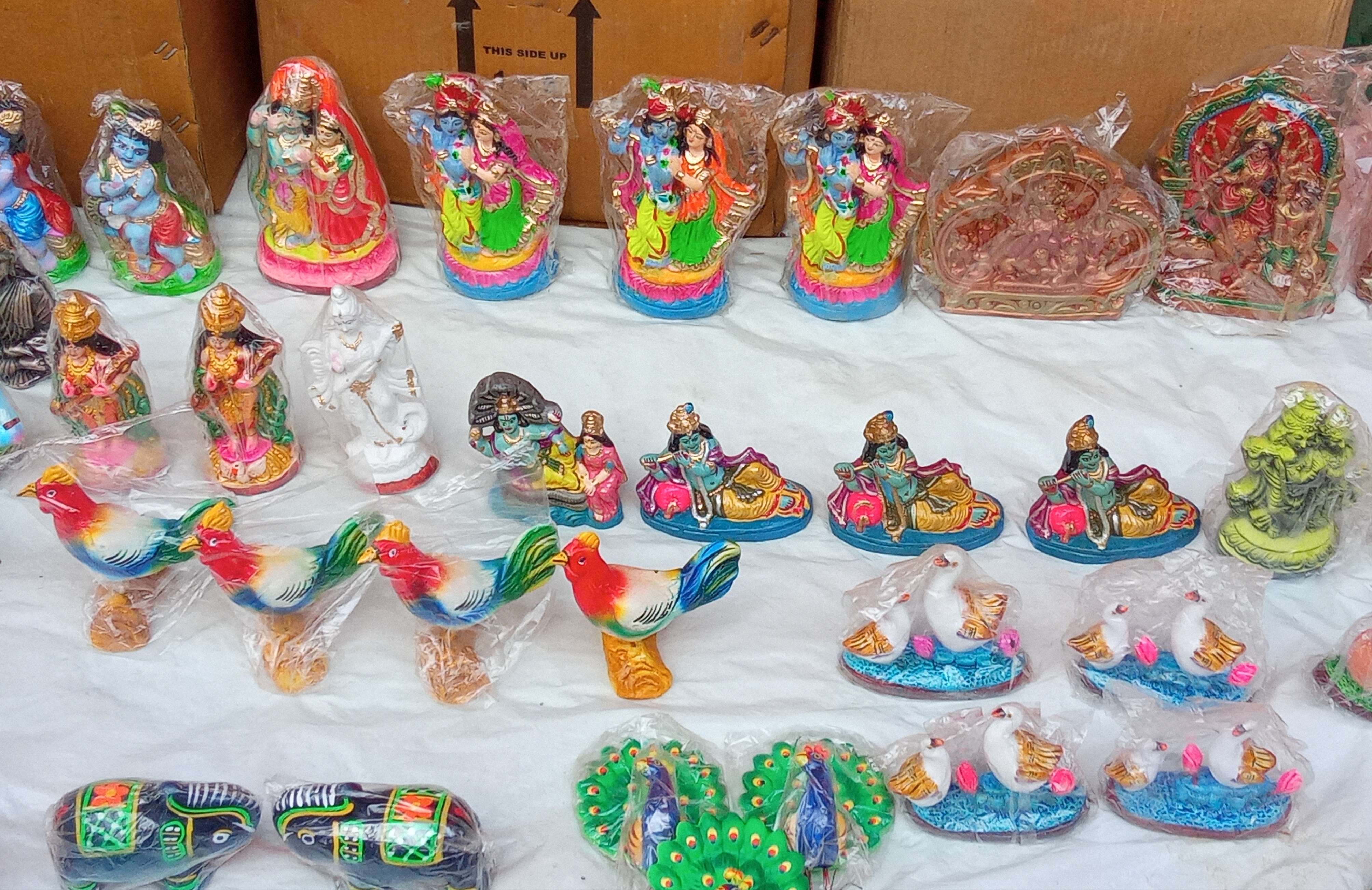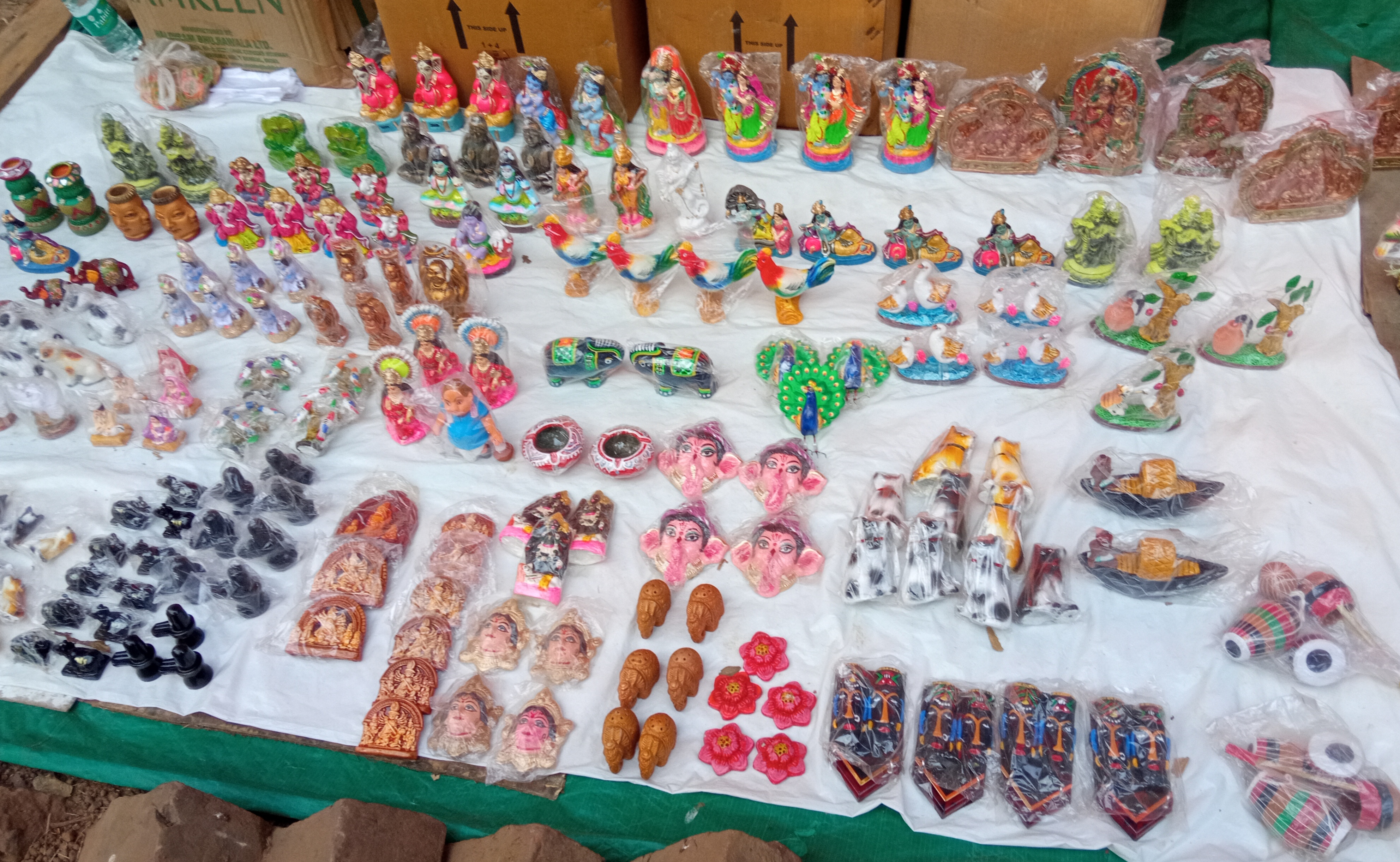 এখানে রয়েছে বেশ কয়েকটি মাটির তৈরি ঠাকুরের ও জীবজন্তুর মূর্তি।যেমন--গোপাল,রাধা-কৃষ্ণ, গণেশ,দূর্গা,লক্ষ্মী-বিষ্ণু,লক্ষ্মী,সরস্বতী এবং হাস,মুরগি,ময়ূর ও হাতির মূর্তি।প্রত্যেকটি ভিন্ন ভিন্ন ডিজাইন ও রং দিয়ে তৈরি করা, যেগুলো সত্যিই আকর্ষণীয় ছিল।