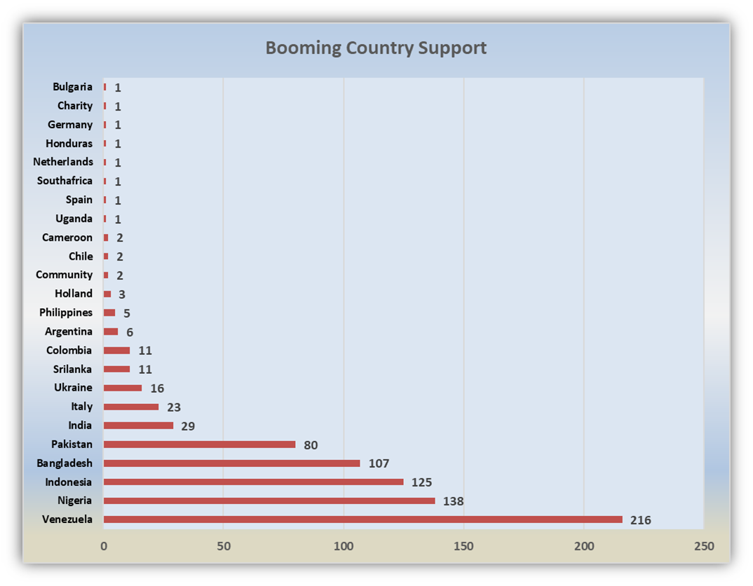 The Booming support program is reaching more and more users, this week 14 users were supported for the first time. Below are the 5 users with the most votes who received this support for the first time..