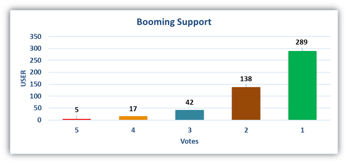 Considering last week's report, We can see that this week there was an acceptable distribution, we continue to see a good number of users with 4 and/or 5 votes, however, the decrease in supported users was due to the decrease in votes cast by Booming accounts.