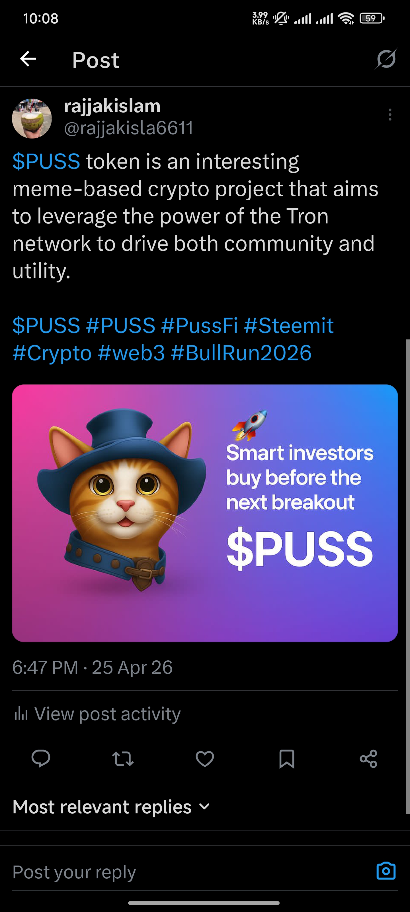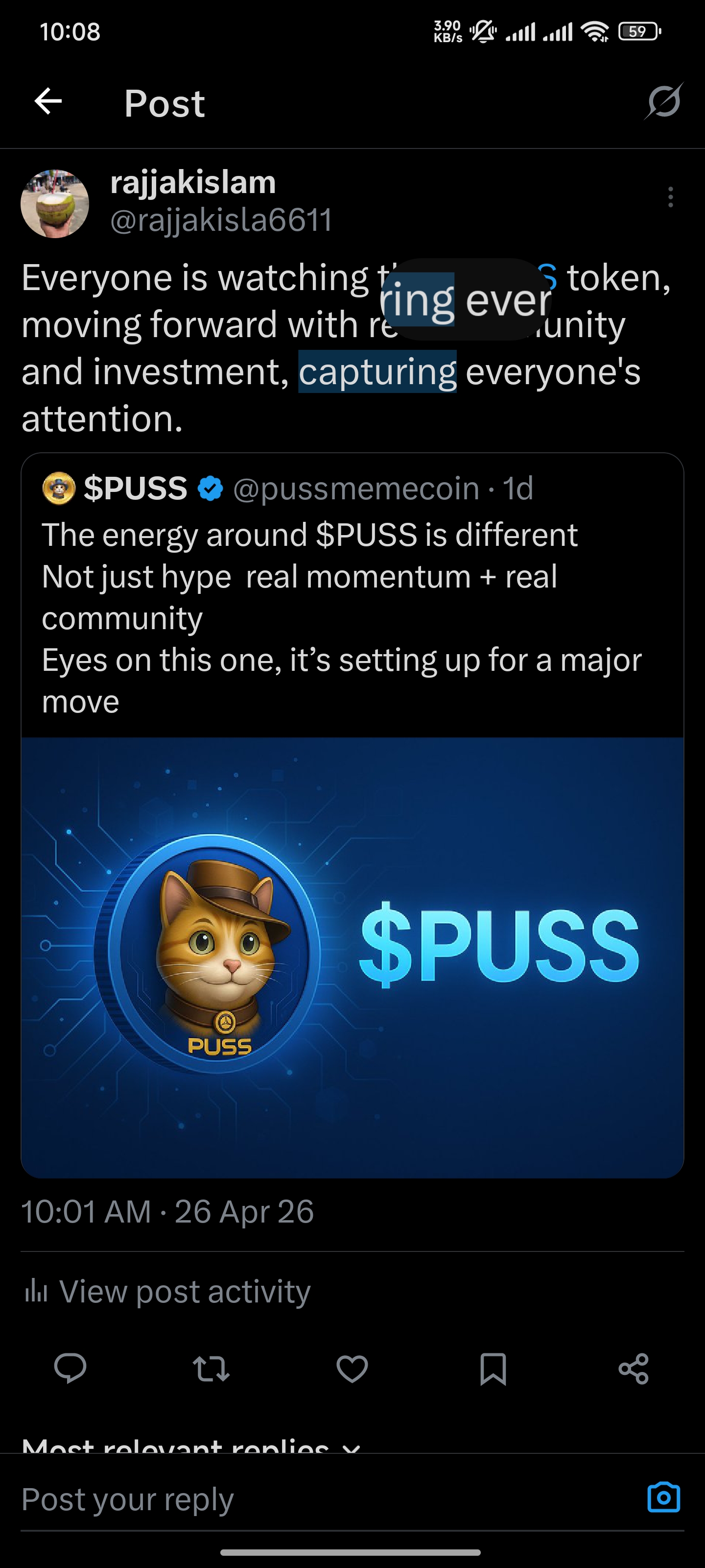 If you look at the links below, you will see that I have tried to present each day's links separately to you. I have only presented the links of all the big Twitter IDs on which I constantly try to comment about the $PUSS token. Apart from this, I also try in many ways to complete the promotional work. Since I am a member of the promotion team, I am constantly trying to take the $PUSS token forward from my place. I am ending this post by writing today's post and thanking everyone on my behalf