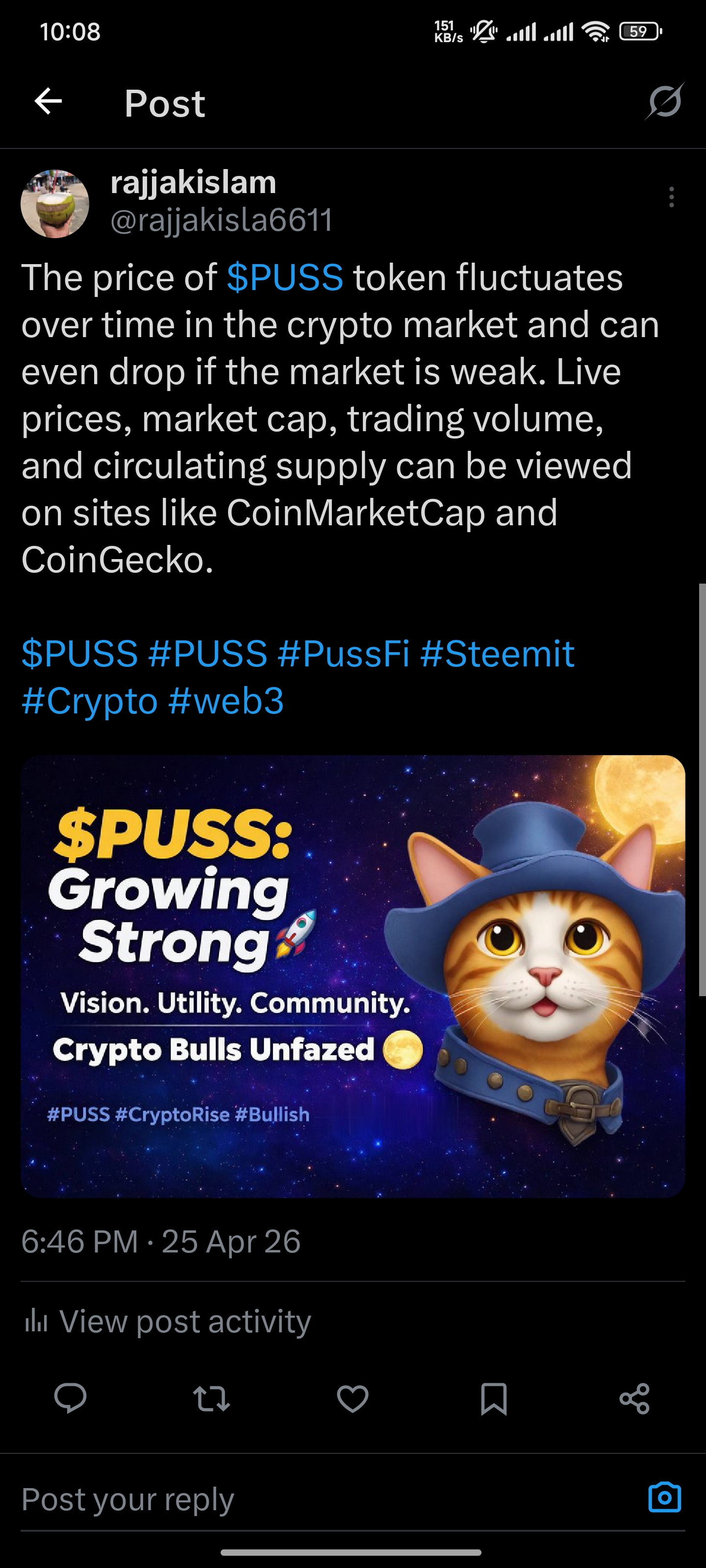 Assalamu Alaikum my Steam friends, I hope you are doing well. I am also doing well with your prayers. I am @kibreay001 today I am going to share with you a post about $PUSS token promotional issues. I am constantly trying to share posts about promotional issues from my place and I am constantly trying my best to pay attention to promotional tasks. Every day after completing the $PUSS token promotion tasks, I give links to the promotional tasks below the post. Today, I have appeared to you again to create a report at the end of the week with those links. I try to publish a report very nicely at the end of every week so that everyone, starting from the community admin moderator, can understand that we are constantly participating in the $PUSS token promotional tasks and trying to move forward. I think that if every user completes the promotional tasks together like this, it is possible to bring it forward in a very short time. Since every user of this platform has more or less $PUSS tokens, I think it is the responsibility of every user to participate in the promotional work and move it forward. If all users work together and try to move it forward, then it is possible to achieve success in a very short time.