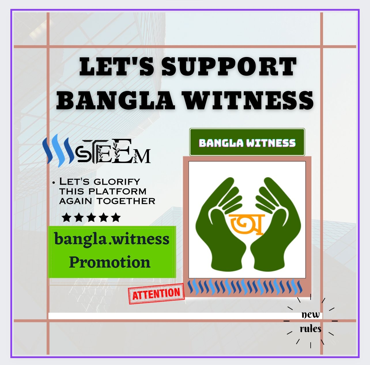 Bangla.Witness is only 274 days old. That is only 9 month. That means you understand that our witness is not so old. But by looking at the ranking of our witness you understand how successful our position is on this platform.