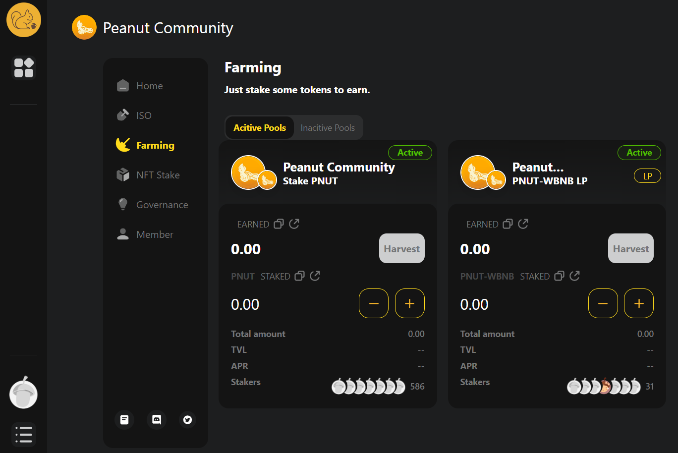 Through the ISO service, users can generate PNUT tokens by delegating Steem Power to the main account of the nutbox.mine project running on Steem. Apart from that, users can also stake PNUT in Farming offers.