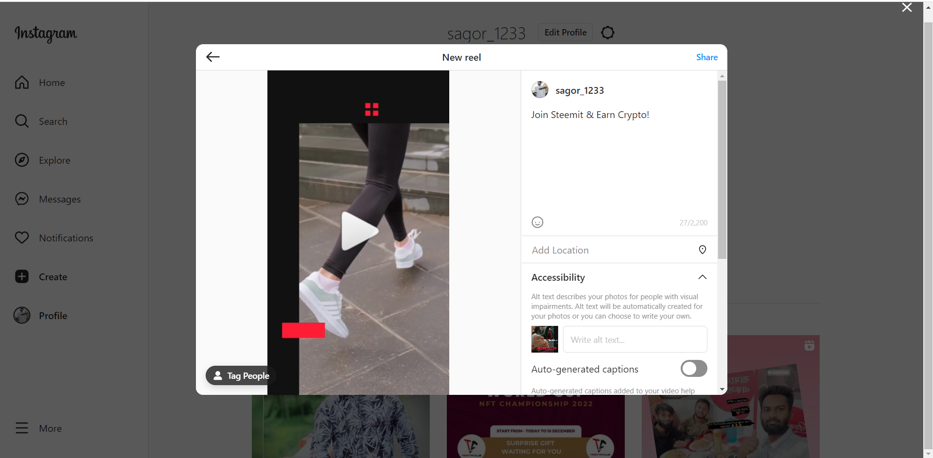 The next step was to upload the reel to Instagram and I was doing it step by step. I wish from my heart that thousands of authors come to Steemit and become popular like Facebook, Twitter, Instagram. With the joint efforts of all of us, one day Steemit will become as popular as everyone else.